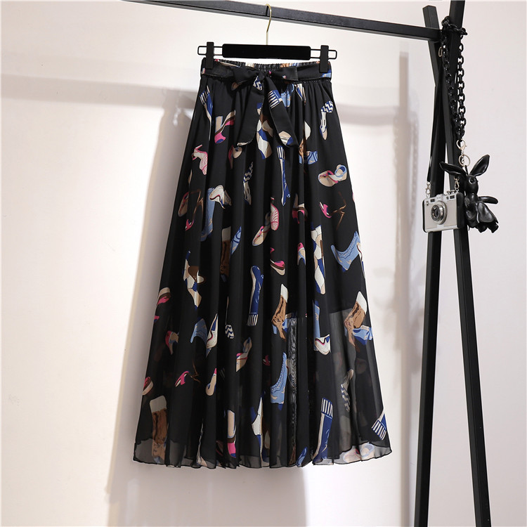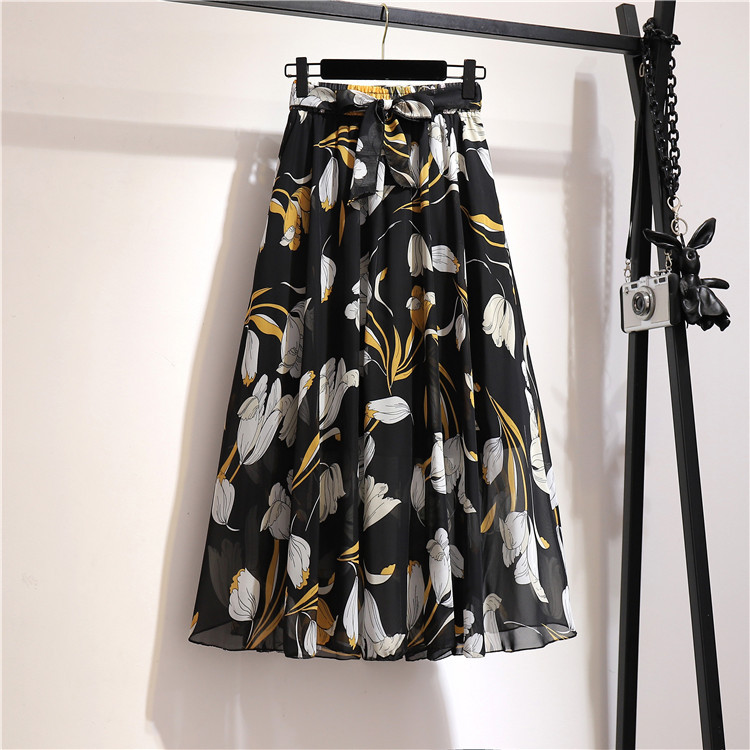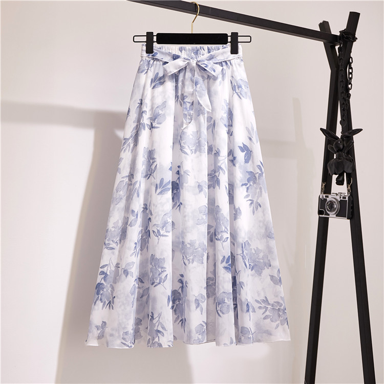2023春夏新款波西米亚雪纺半身裙中长款高腰仙女碎花大摆裙沙滩裙