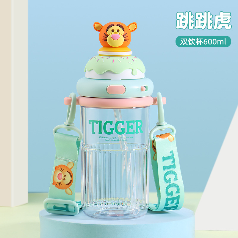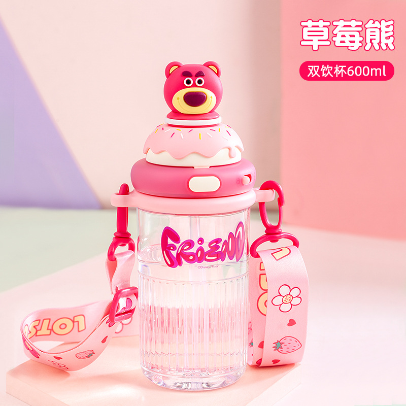 Disney儿童水杯草莓熊高颜值系列公仔带吸管学生宝宝上学专用水杯