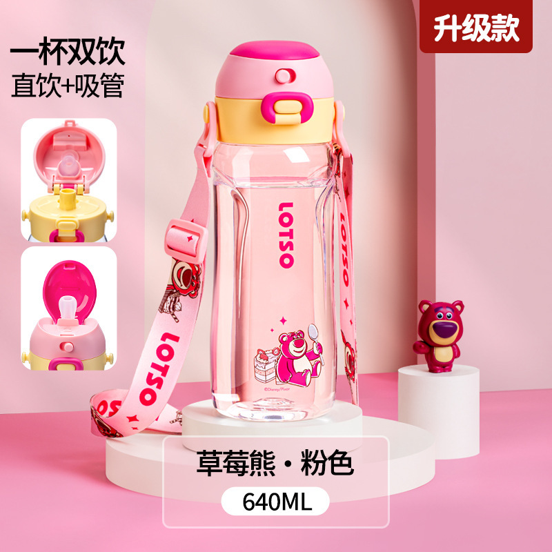 草莓熊儿童水杯女孩可爱夏天吸管壶小学生男上学专用防摔双饮杯子