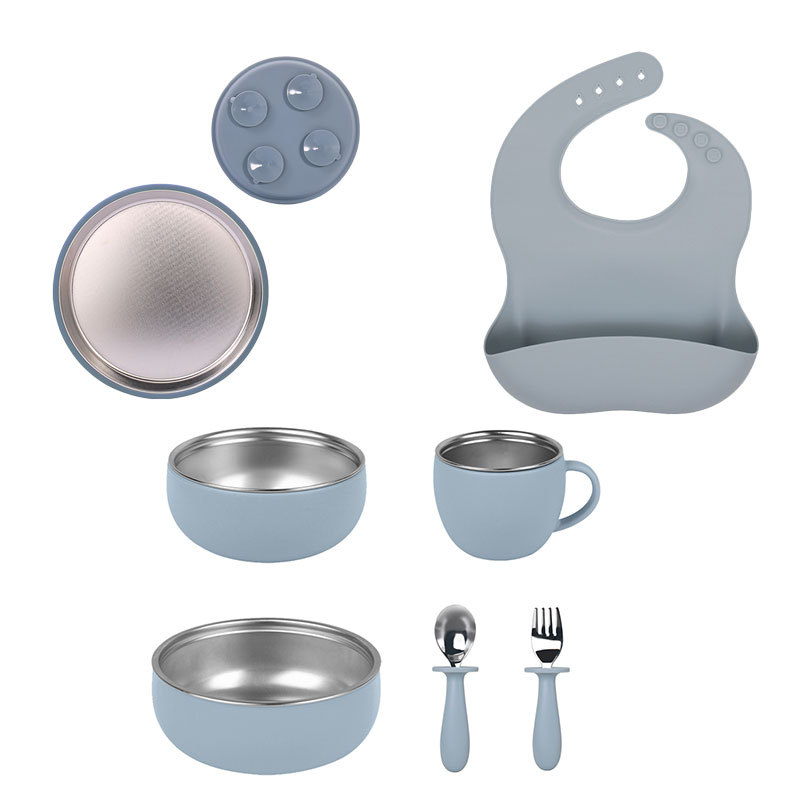 不锈钢餐盘硅胶防滑吸盘套分格餐盘隔热儿童喂养辅食餐具