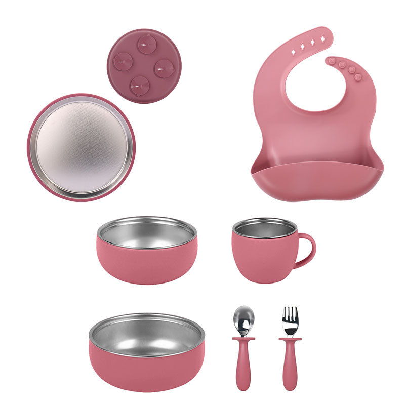 硅胶餐盘 粉色7件套装