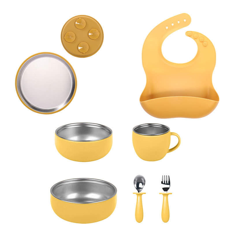 硅胶餐盘 土黄色7件套装