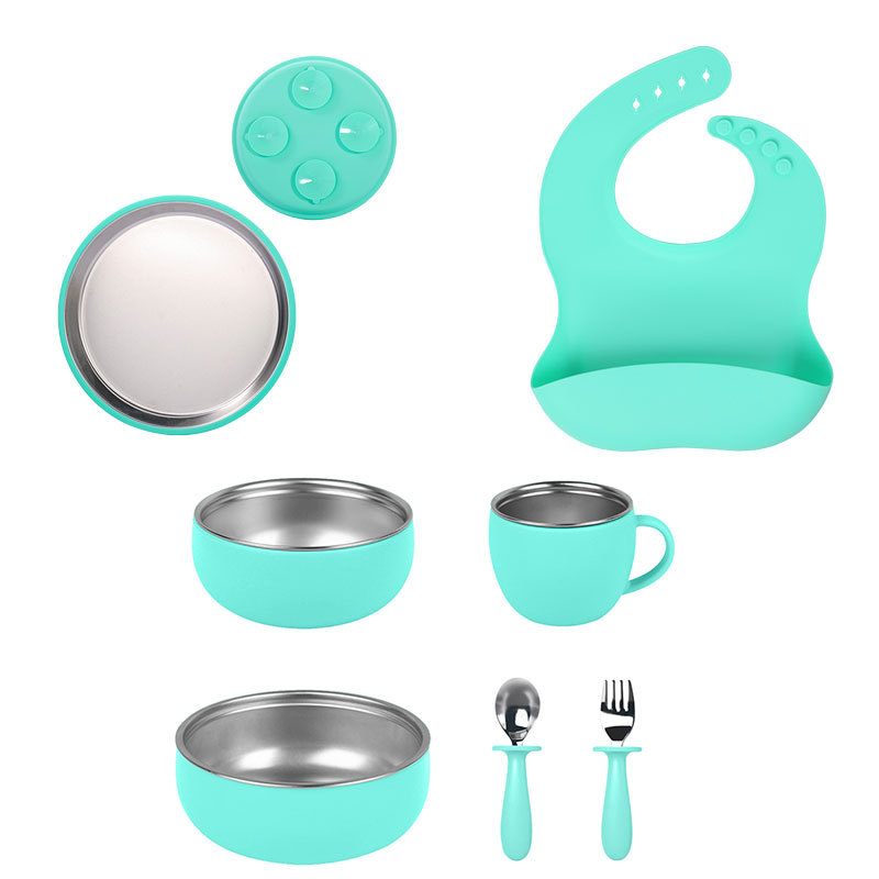 硅胶餐盘 青色7件套装