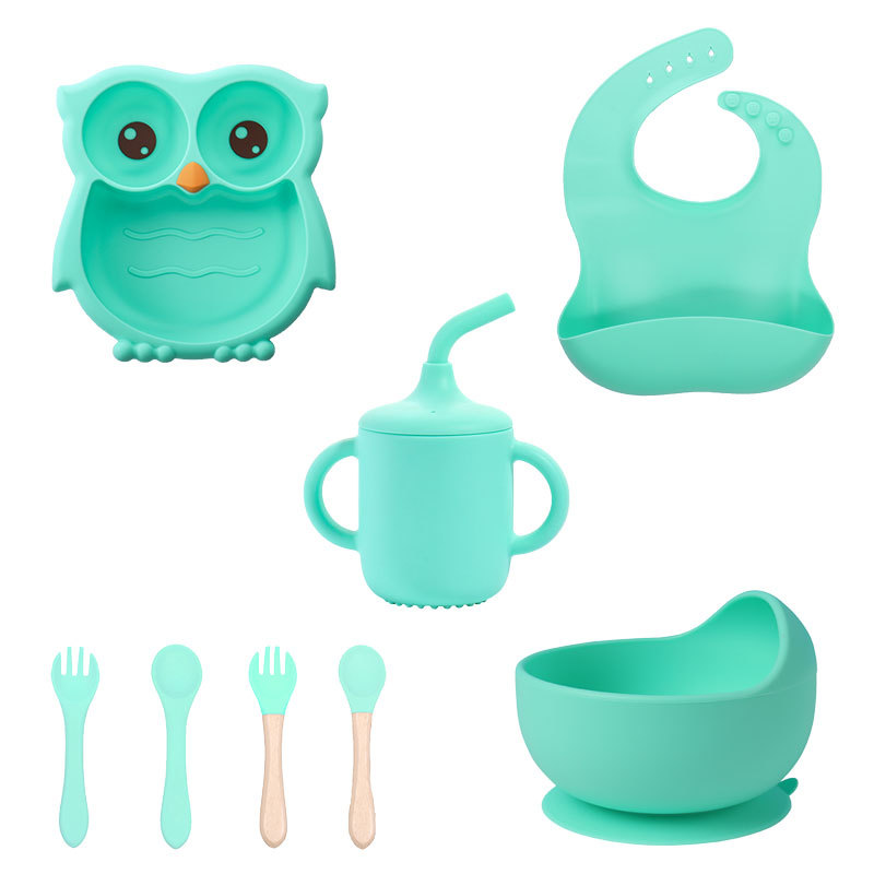 清晰绿 猫头鹰硅胶辅食盘8件套