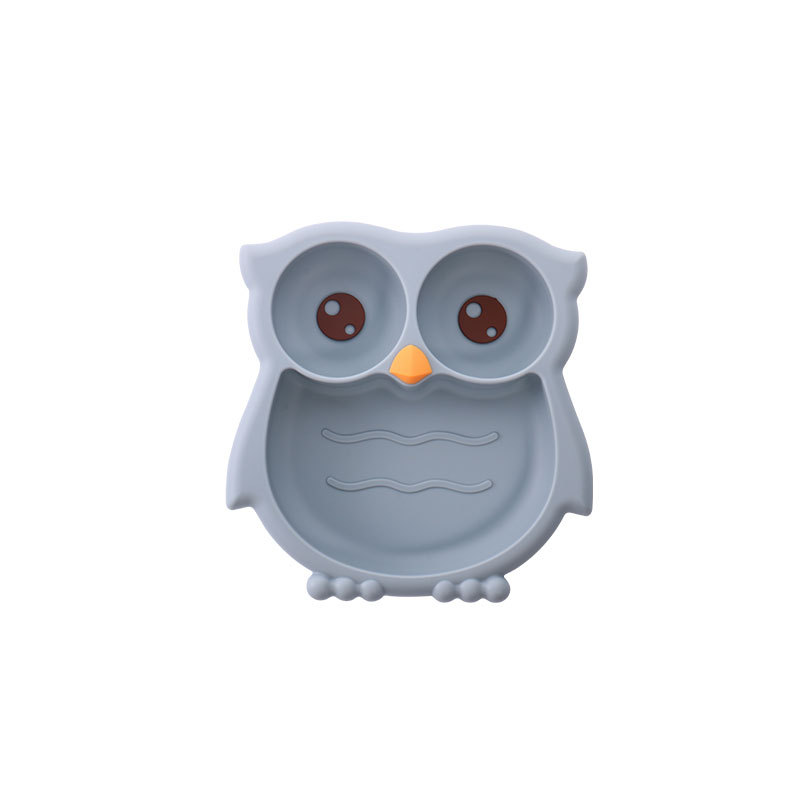跨境卡通猫头鹰儿童餐具套装级硅胶碗碟盘围兜婴儿辅食训练带分格
