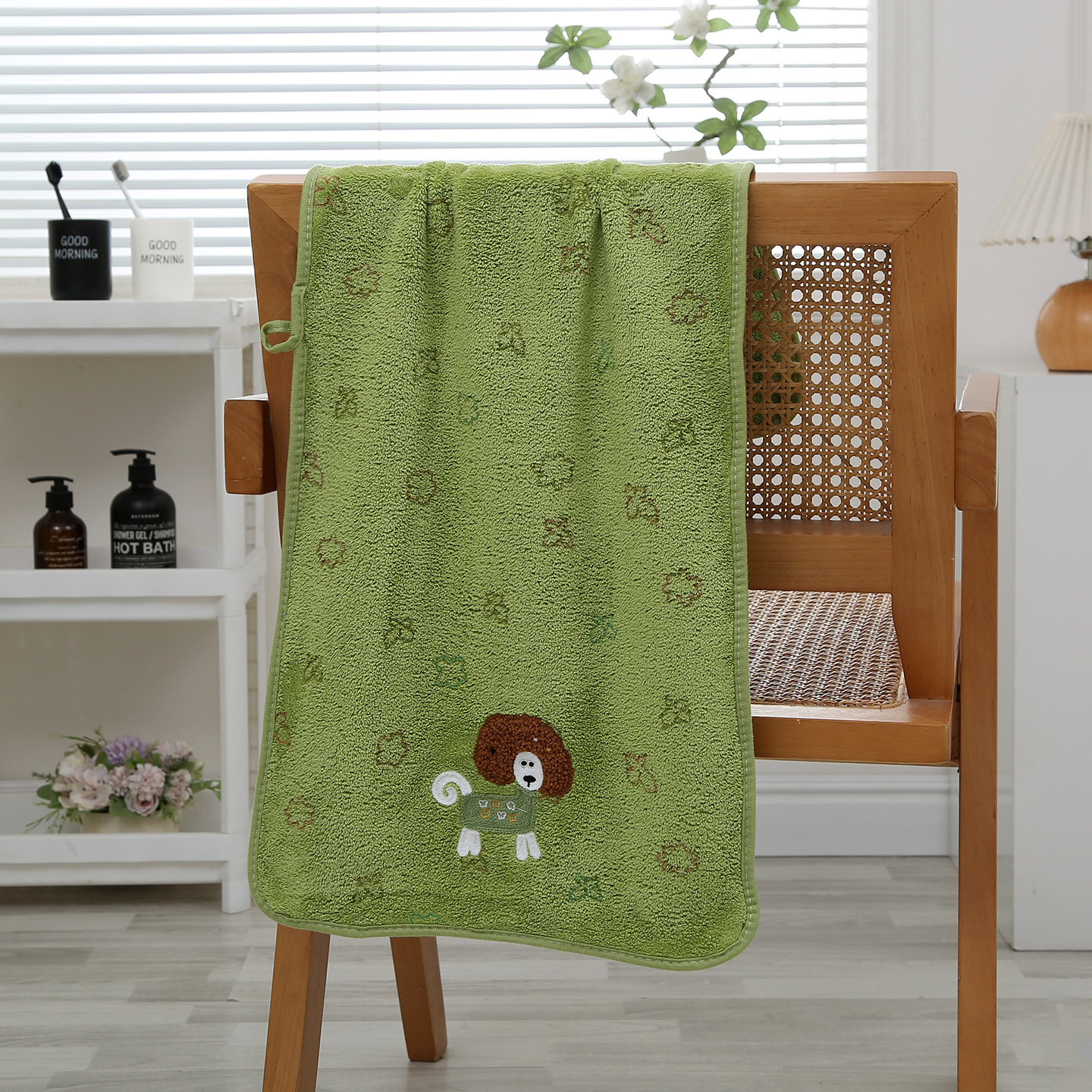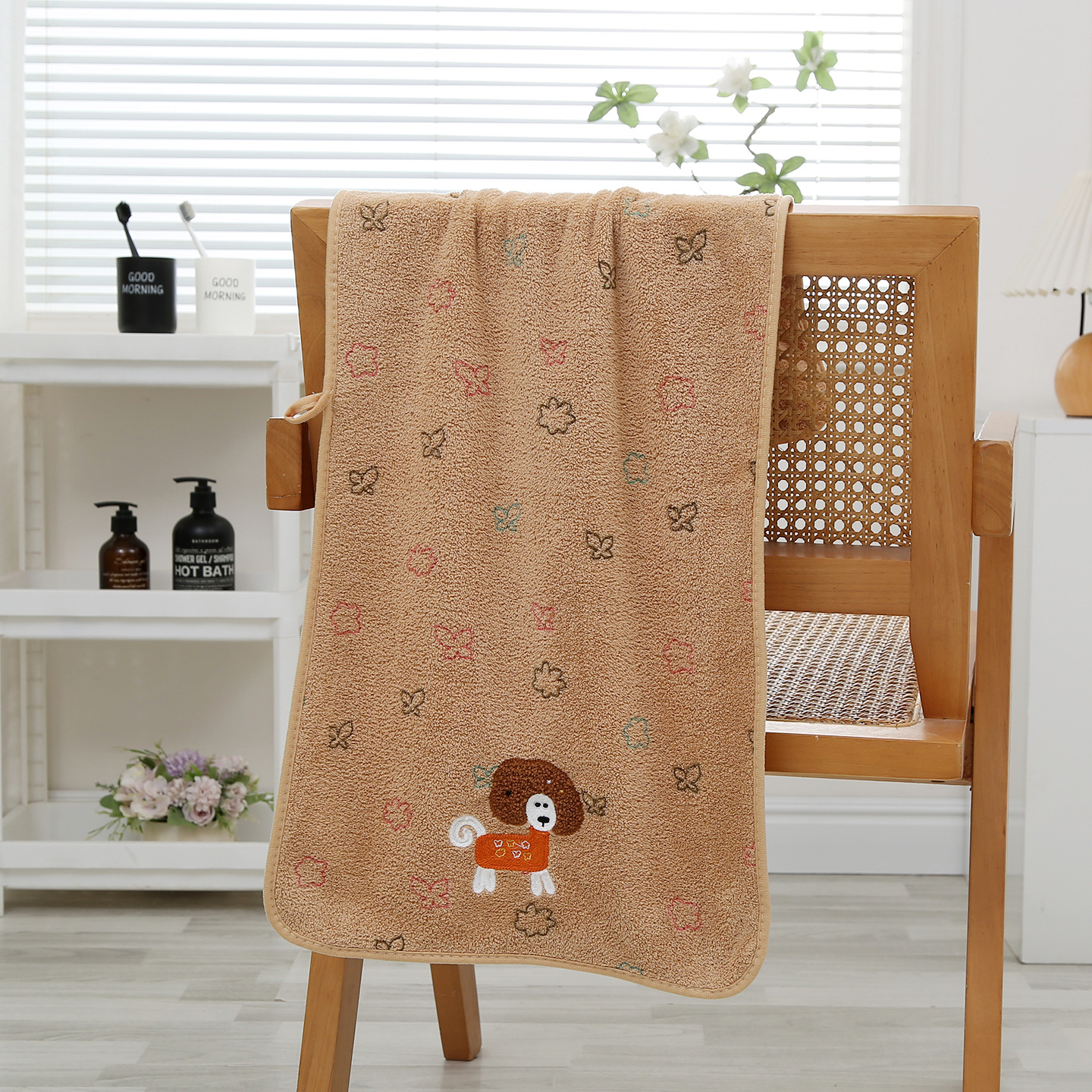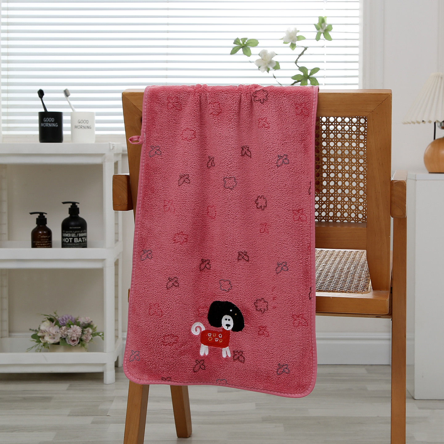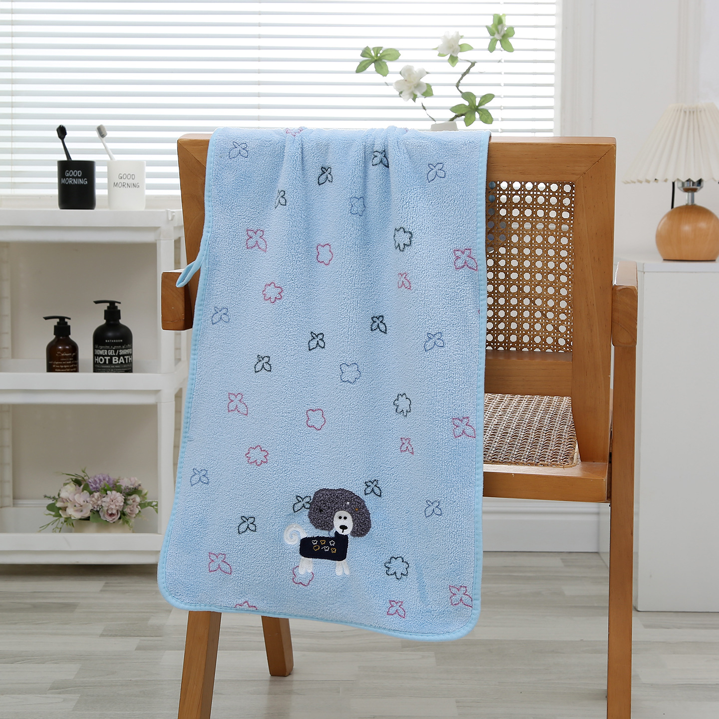 新品珊瑚绒卷发狗柔软吸水毛巾男女通用卡通可爱刺绣爆炸狗浴巾