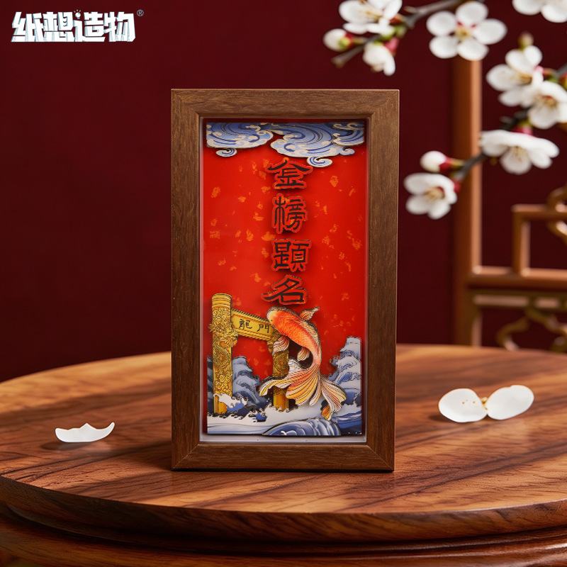 中式国潮3D立体纸雕画高考金榜题名相框画摆件送亲友学生乔迁礼物