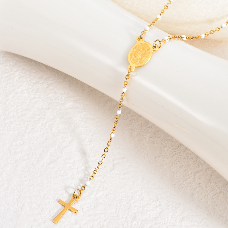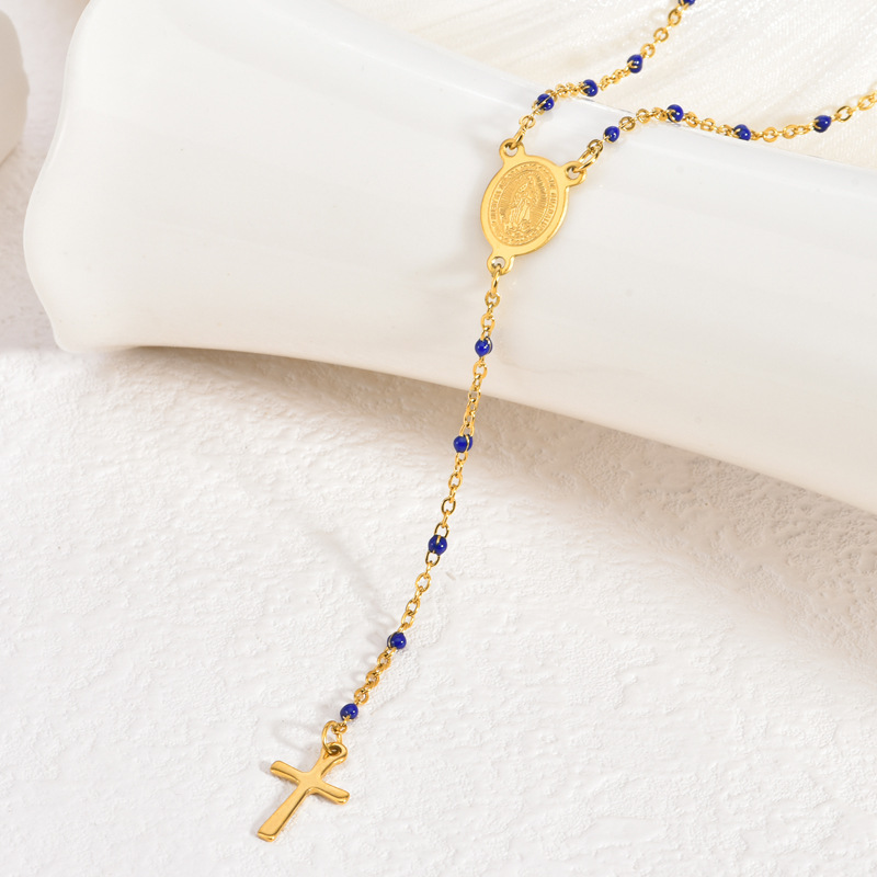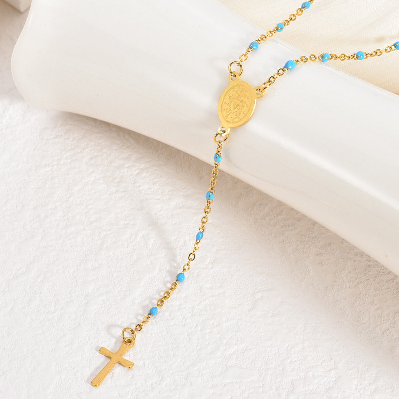 欧美跨境18K金真空滴油电镀不锈钢0.4十字链宗教图腾双面吊牌饰品
