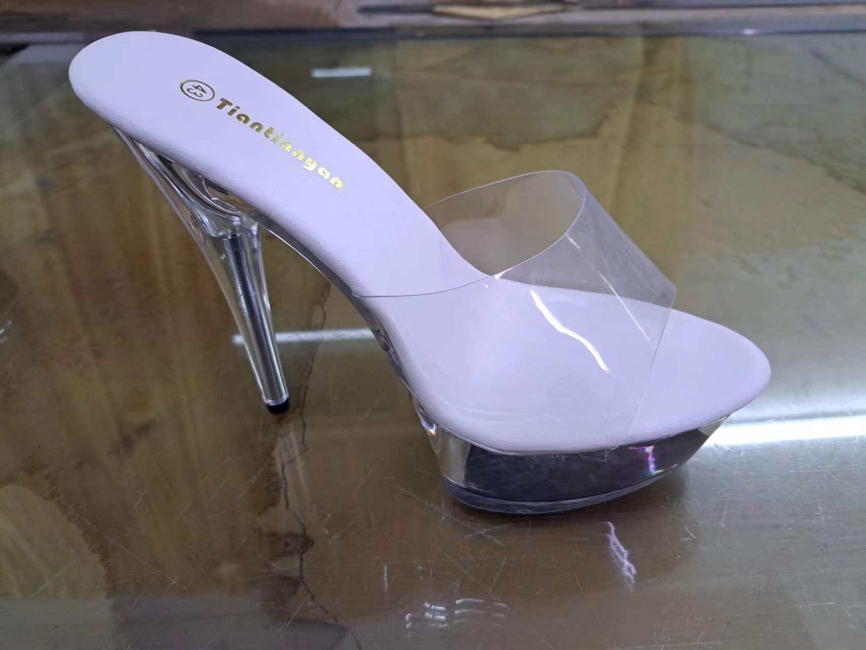 2021夏季时尚新款潮流透明防水台细跟尖头超高跟女休闲时装单鞋