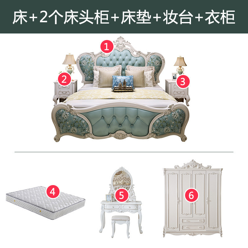 欧式床双人床主卧公主床1.8米大床皮床婚床买组合包货运高箱升级