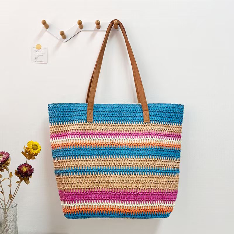 新款环保拉菲草纸编草编包女士百搭单肩包妈咪包时尚沙滩包推特包