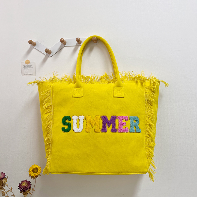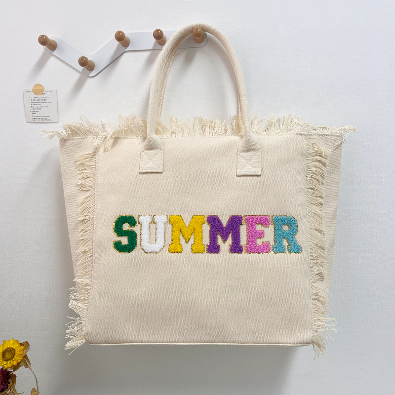 韩系时尚流苏手提包简约休闲帆布包学生通勤大容量托特包