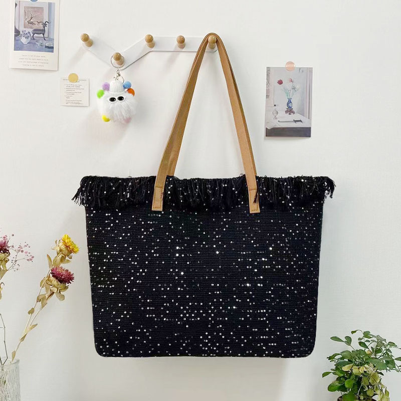 2024新款流苏包亮片大容量跨境手提包沙滩包包包女包时尚热卖