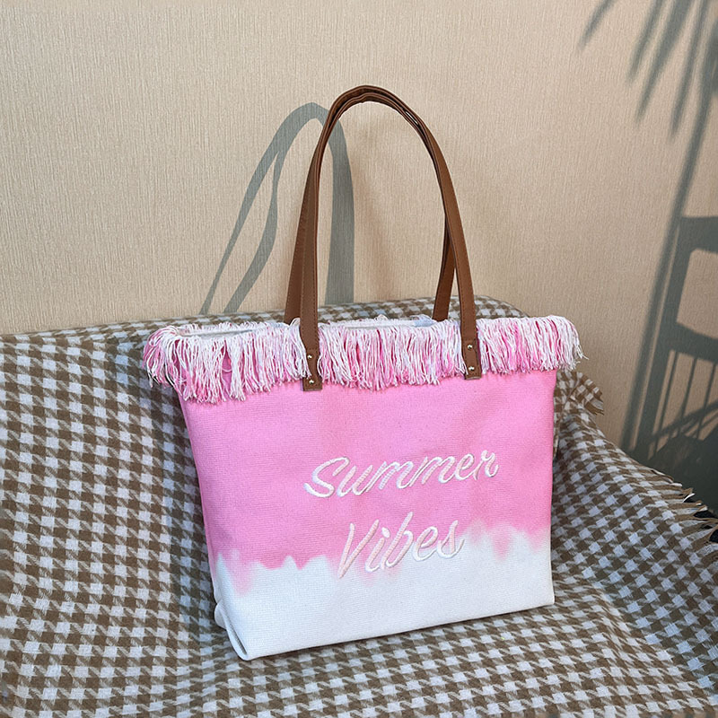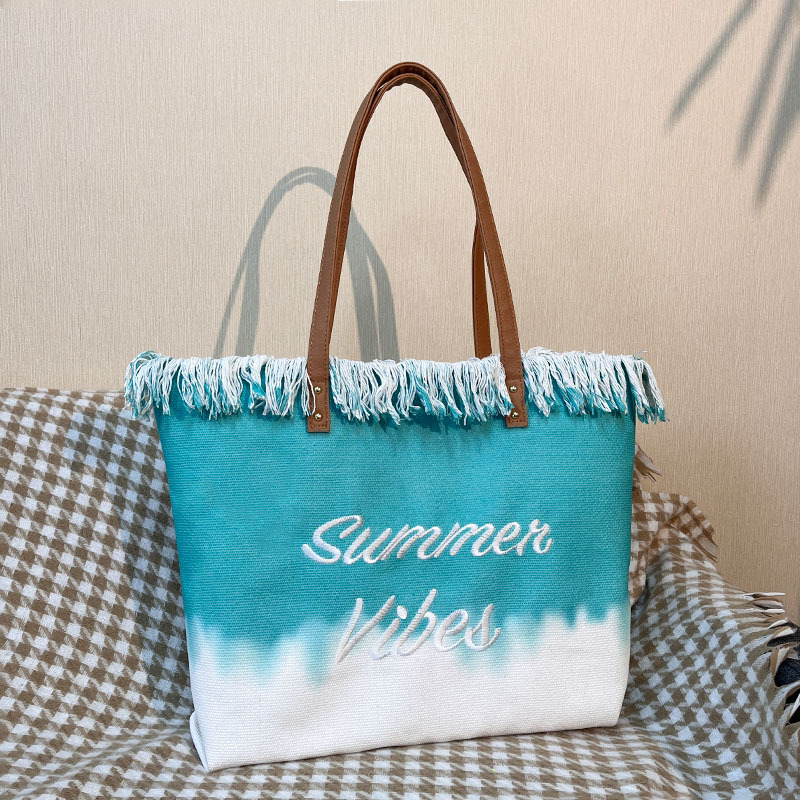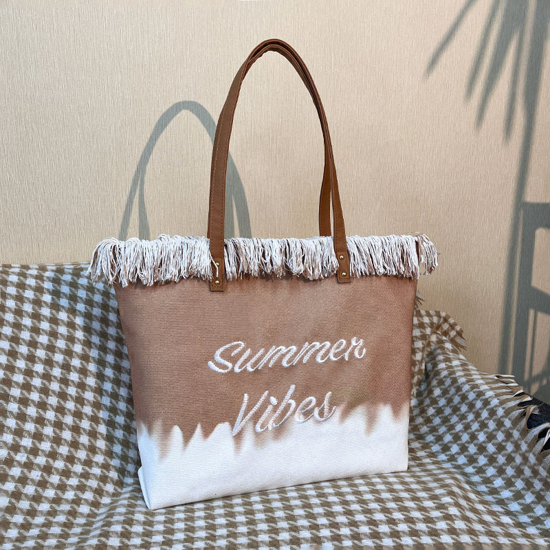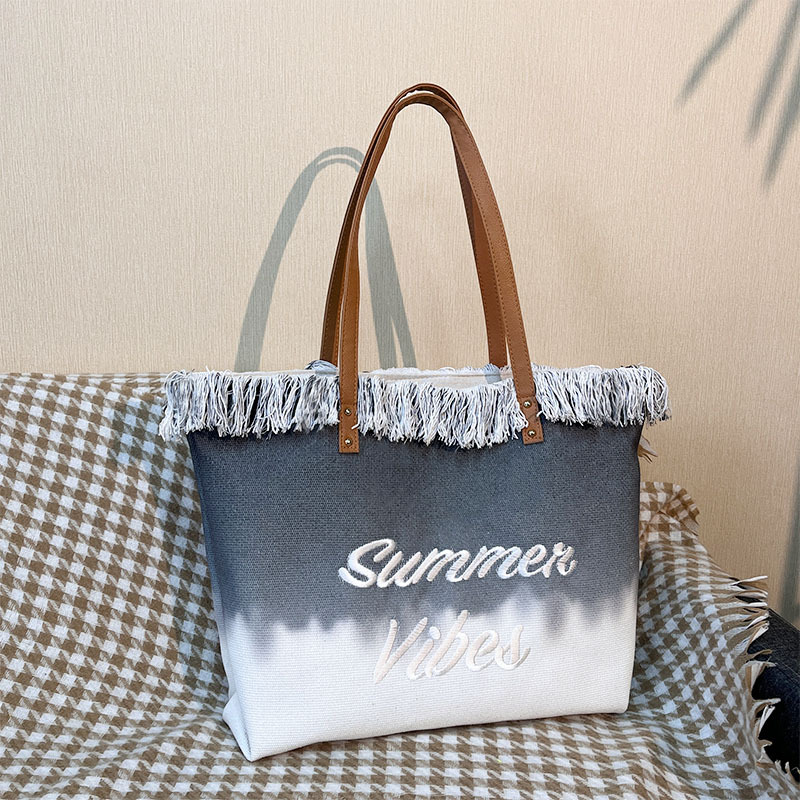 跨境刺绣托特包流苏帆布包拉链通勤包腋下包包新款沙滩单肩包夏季
