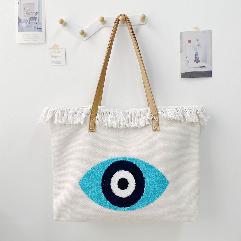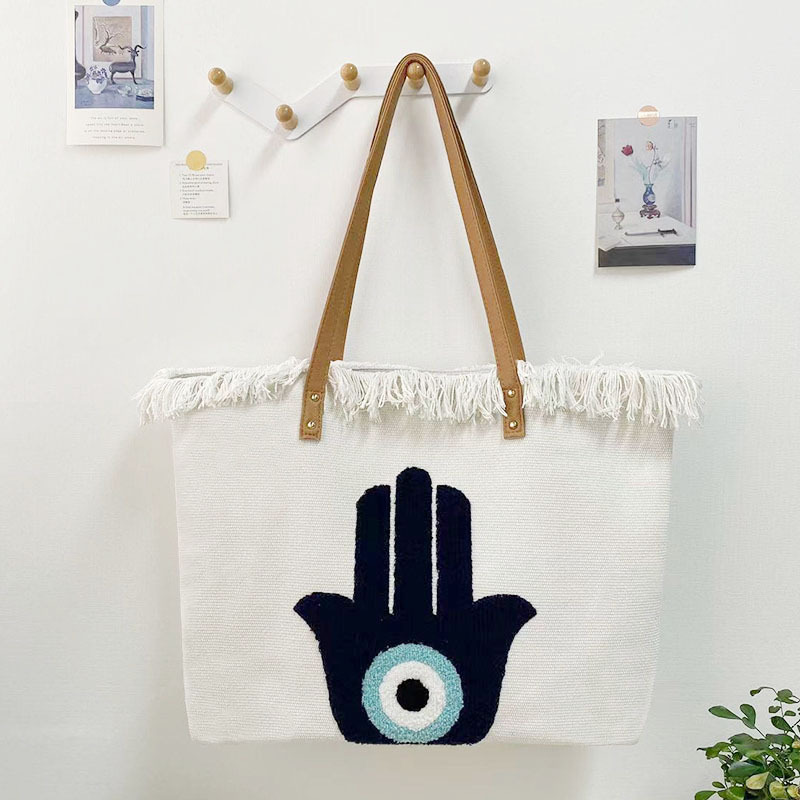 毛巾绣托特包 波西米亚帆布女包欧美跨境手提帆布包小众设计