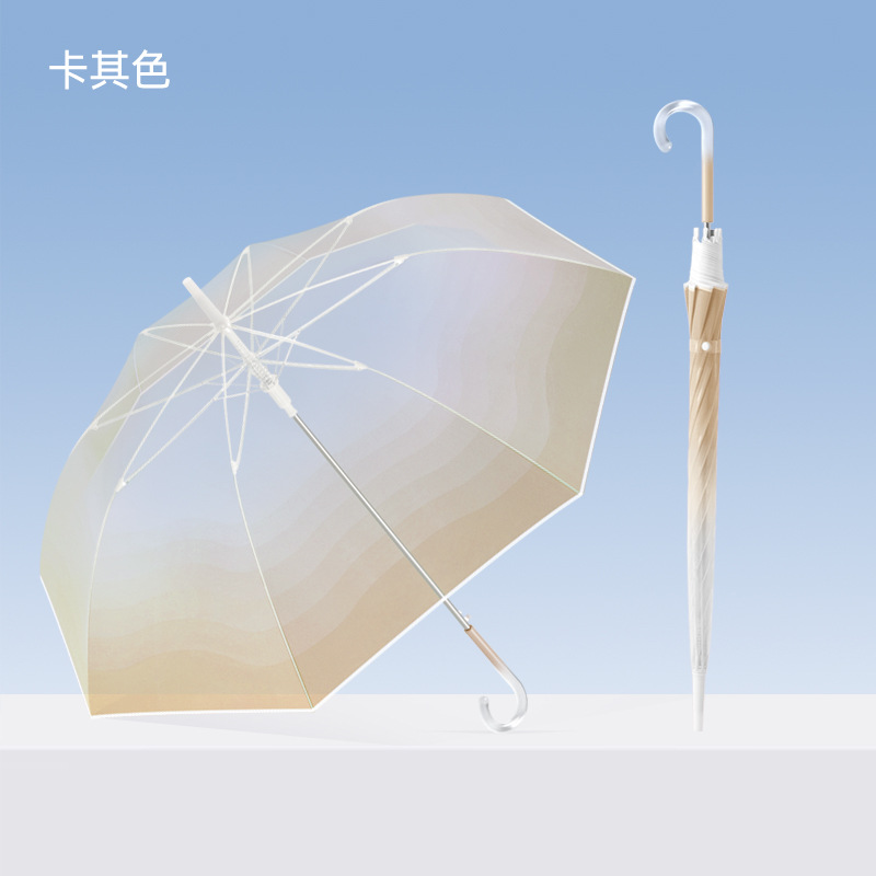 新款透明渐变网红学生透明伞长柄加厚自动直杆长柄雨伞加印LOGO
