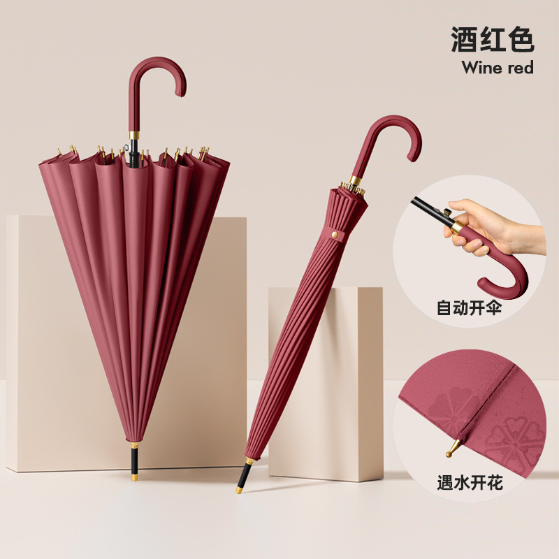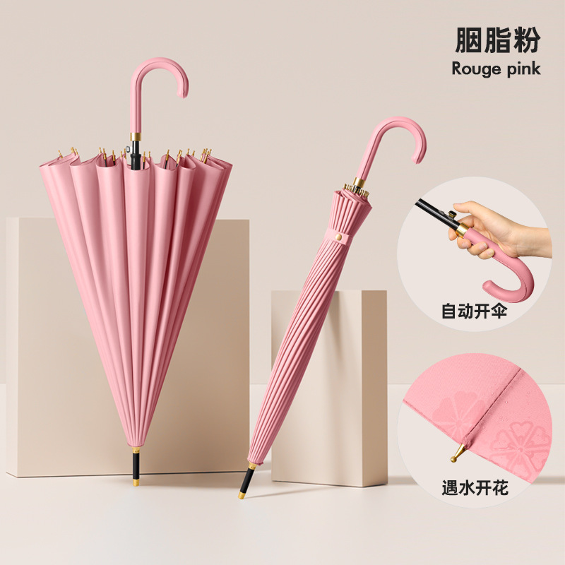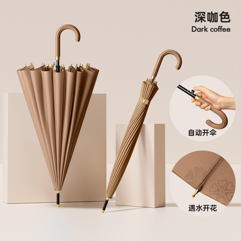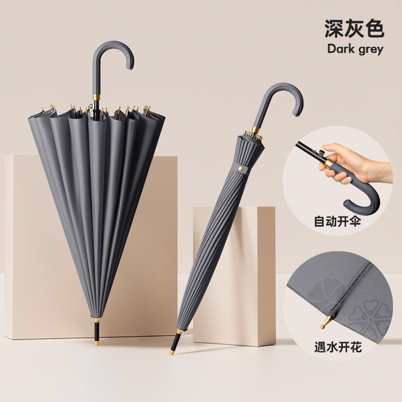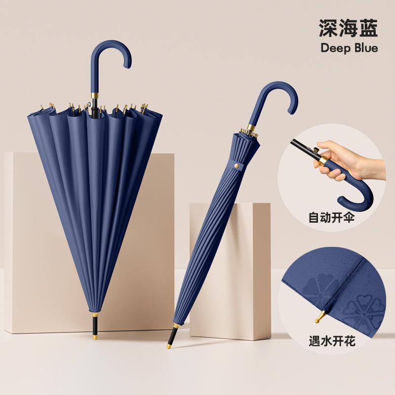 24骨遇水开花弯柄伞长柄晴雨伞加大双人直杆伞商务礼品伞广告雨伞