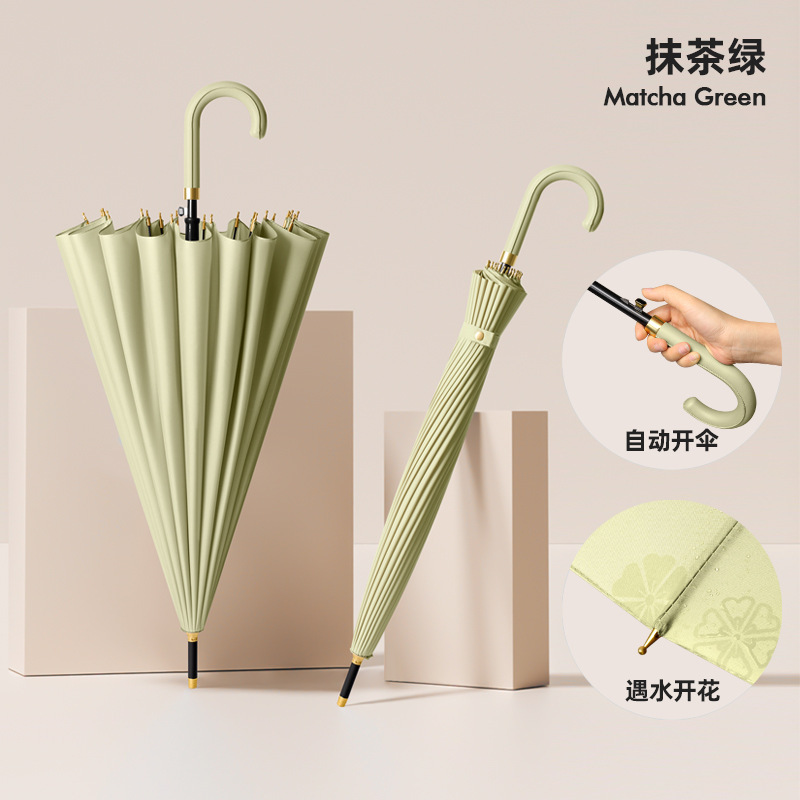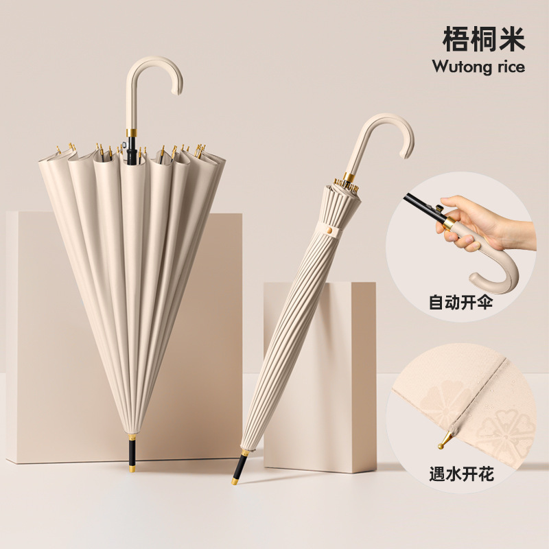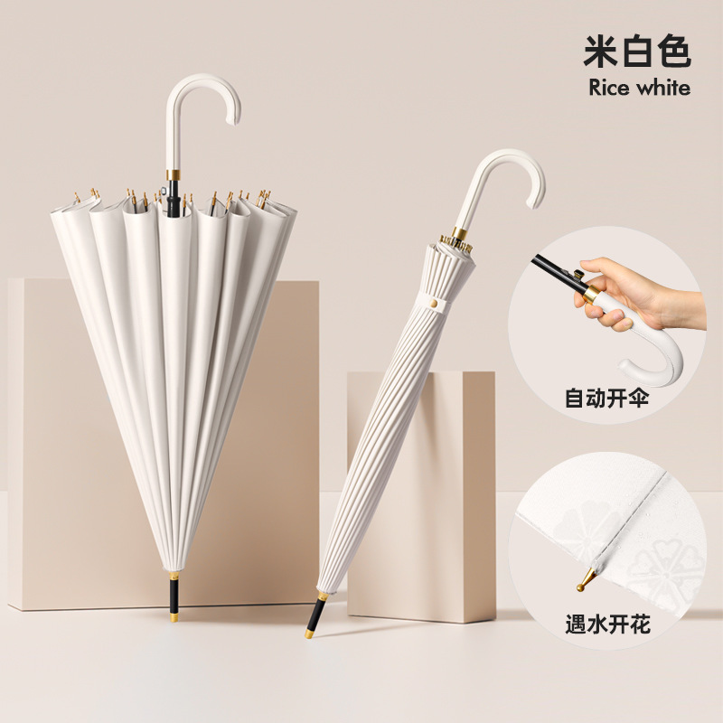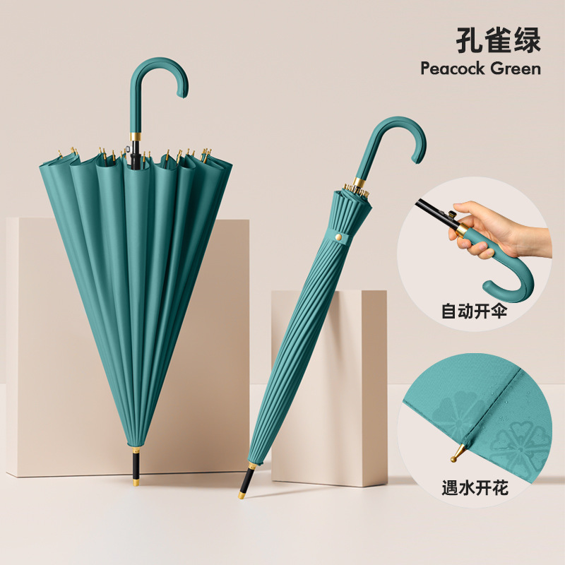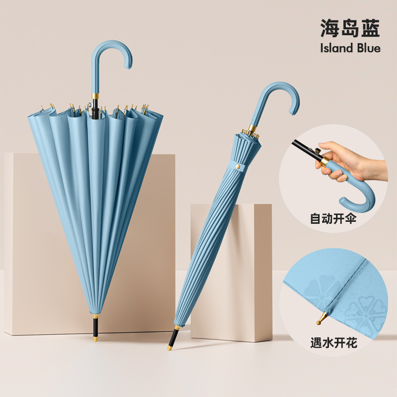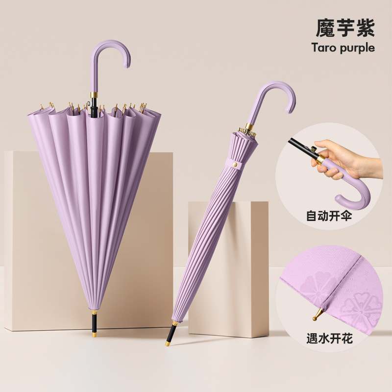 24骨遇水开花弯柄伞长柄晴雨伞加大双人直杆伞商务礼品伞广告雨伞