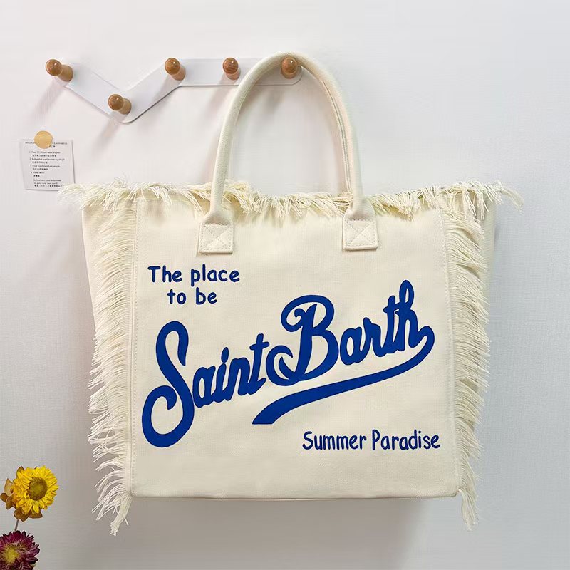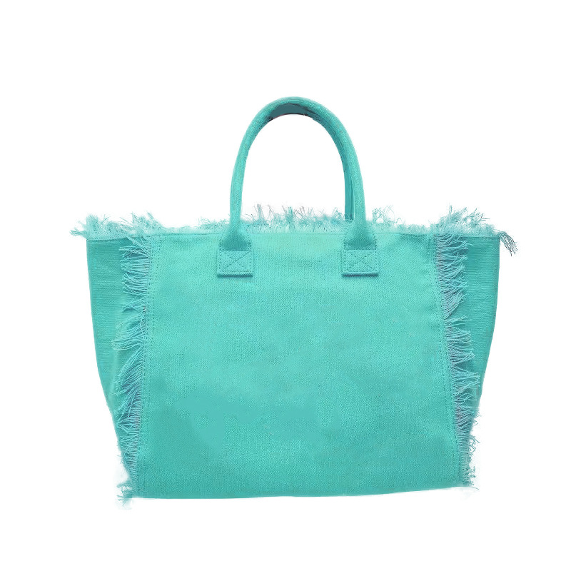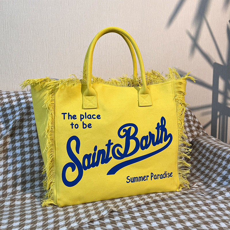 新款牛仔面料亚马逊爆款字母流苏大容量帆布托特包简约通勤单肩包