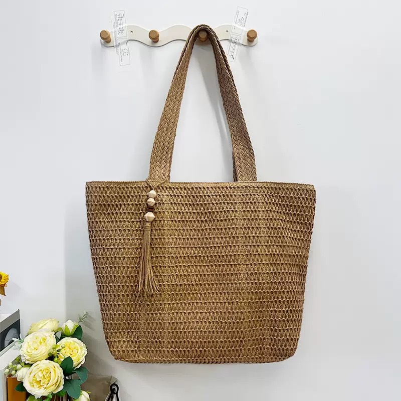 新款旅行森系百搭草编大容量托特时尚沙滩海边编织单肩混搭美学款