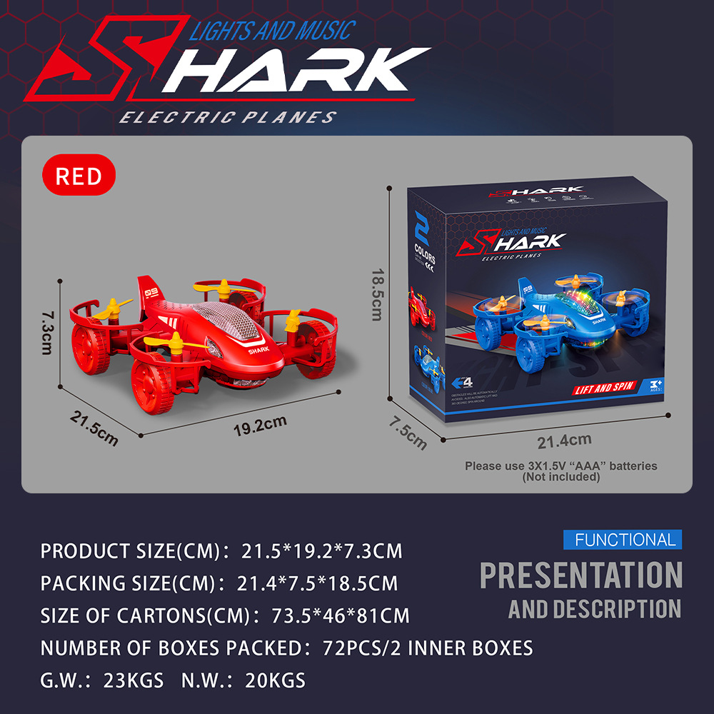 红色-电动声光鲨鱼飞机(英文彩盒)