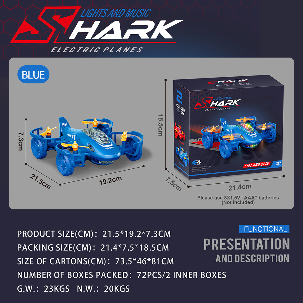 蓝色-电动声光鲨鱼飞机(英文彩盒)