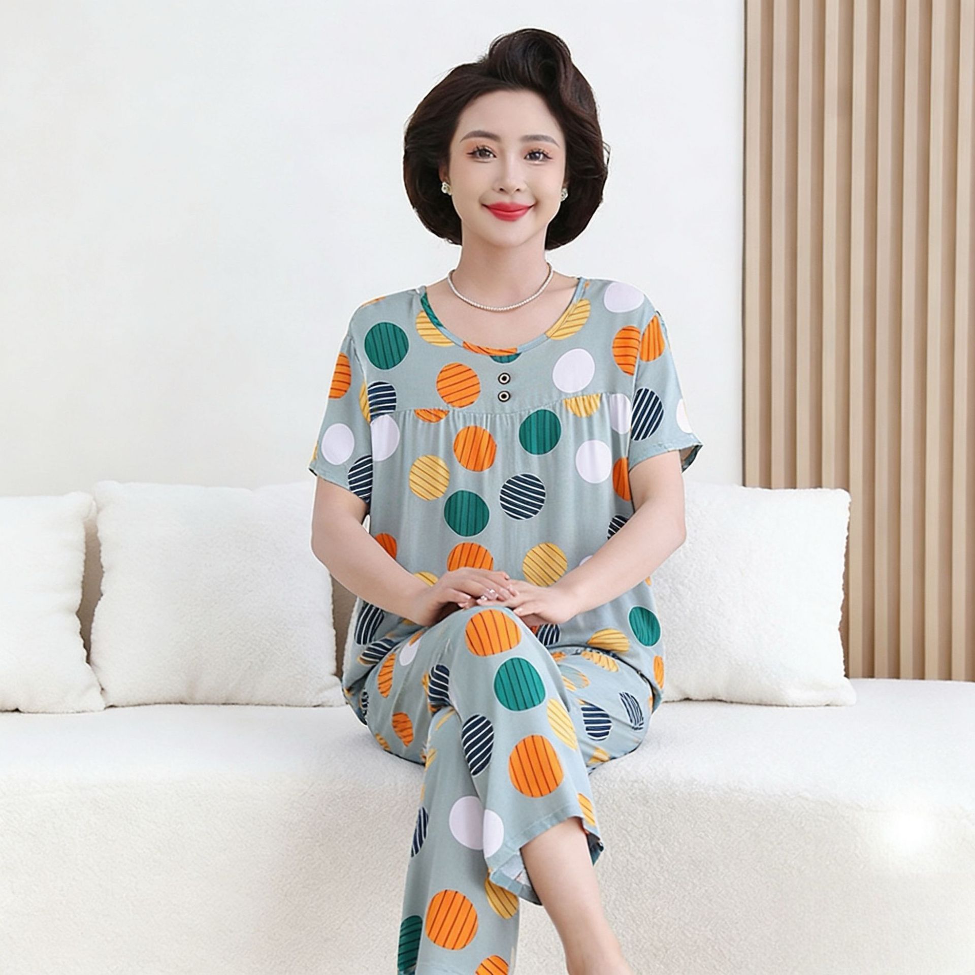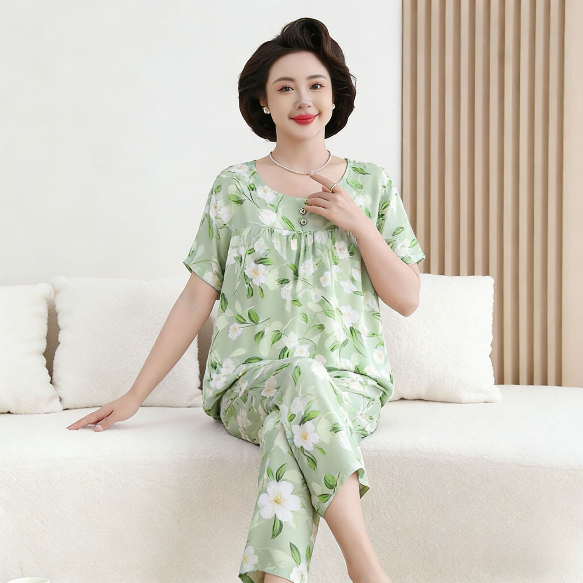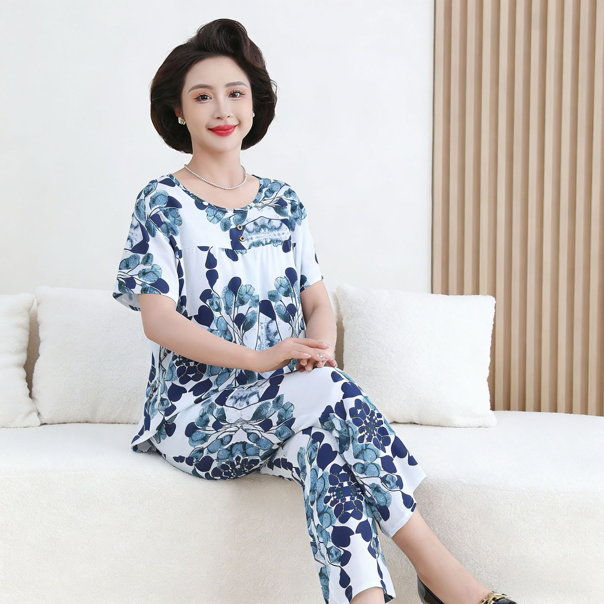 棉绸睡衣女中老年人女妈妈装婆婆装人造棉薄款休闲宽松绵绸家居服