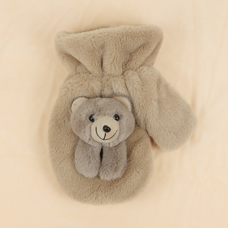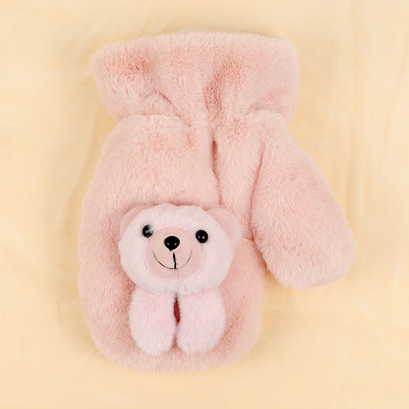 韩版新款加厚手套女冬季毛绒可爱动物头办公居家保暖针织手套