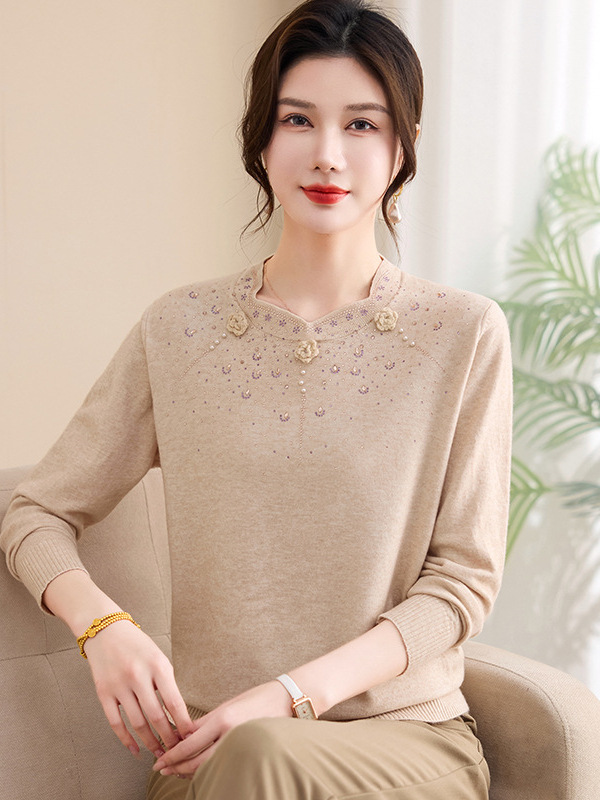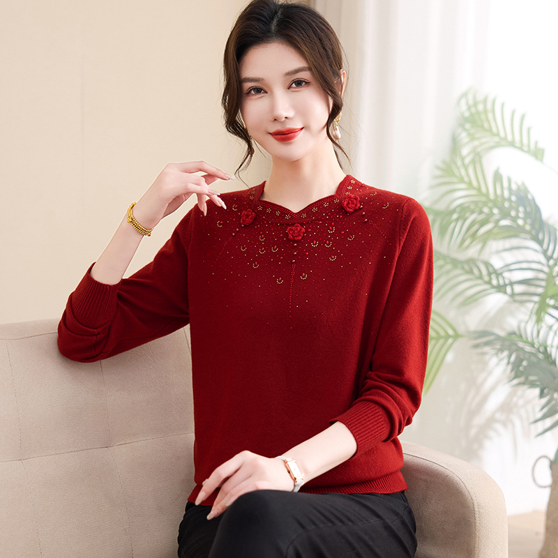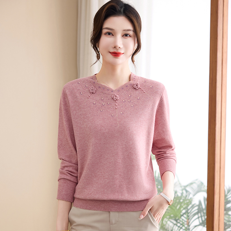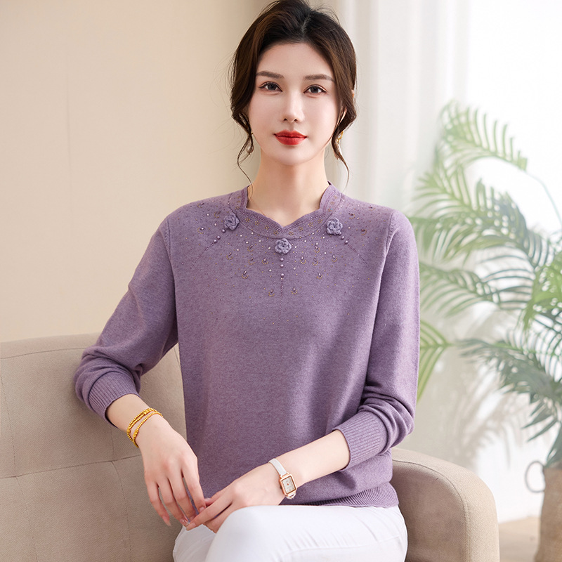 2026新款妈妈春装针织打底衫上衣50岁中老年女装春秋圆领薄款毛衣