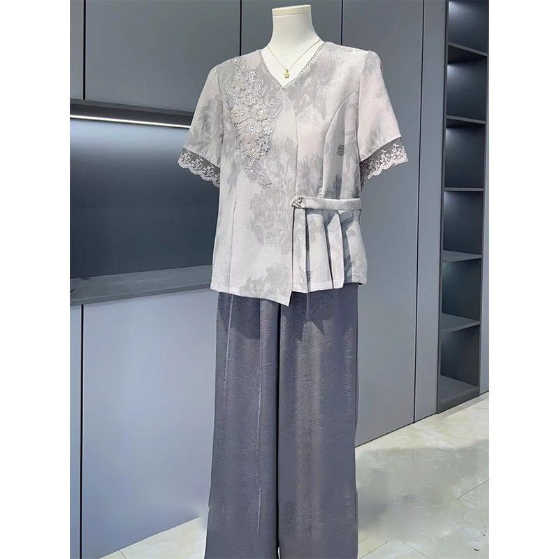 妈妈夏装洋气套装女短袖小衫2026夏季新款感中老年女装两件套