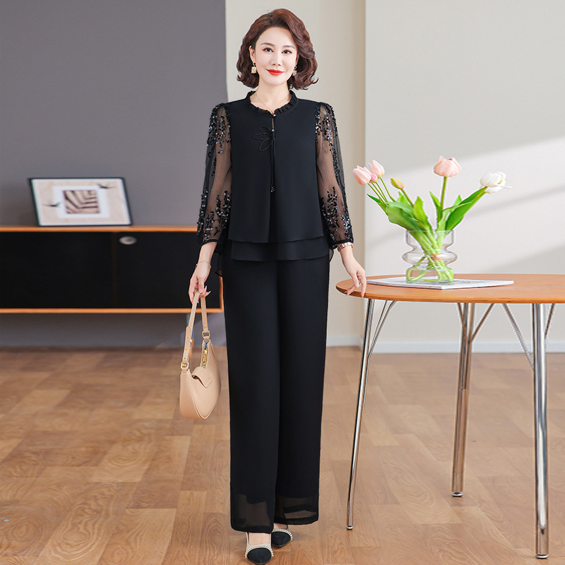 妈妈套装春装女洋气薄款中年衣服气质婆婆装素雅女大码休闲两件套