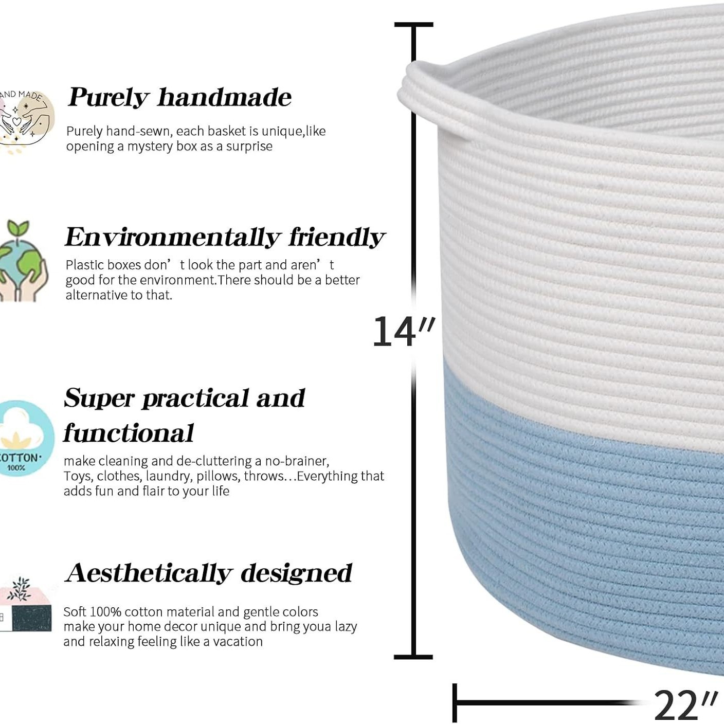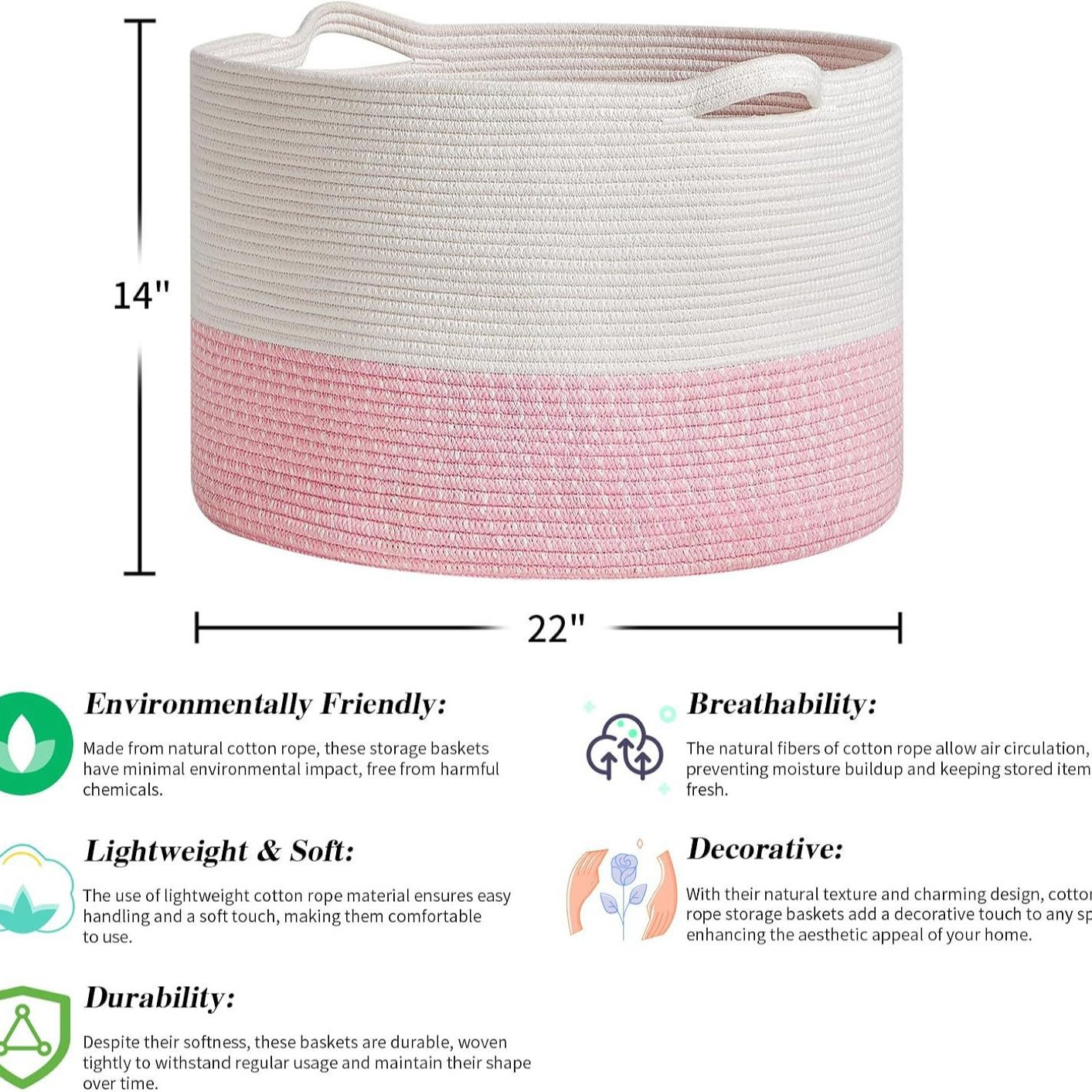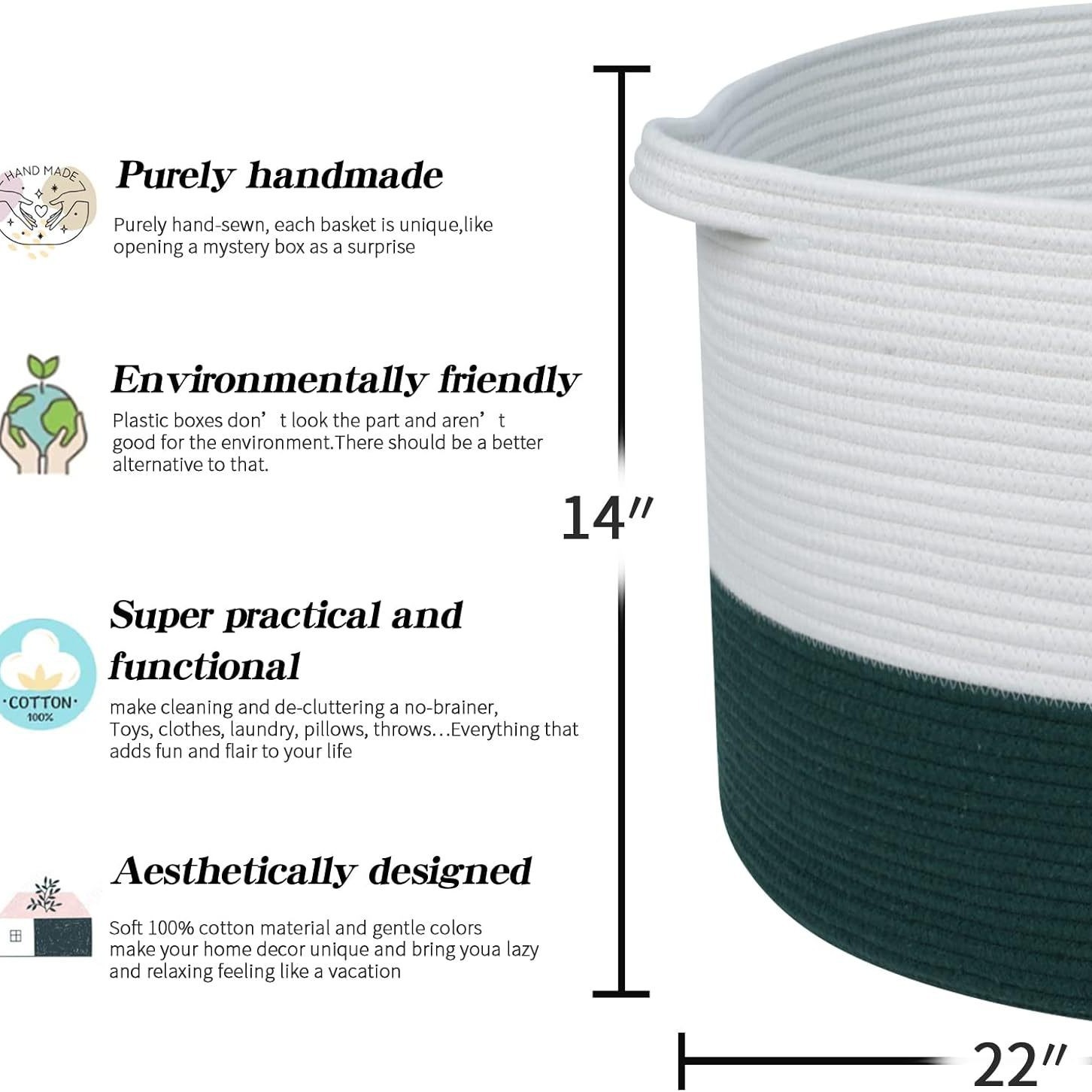 棉绳编织收纳筐家居置物篮玩具杂物衣服筐大号脏衣篮脏衣篓收纳篮