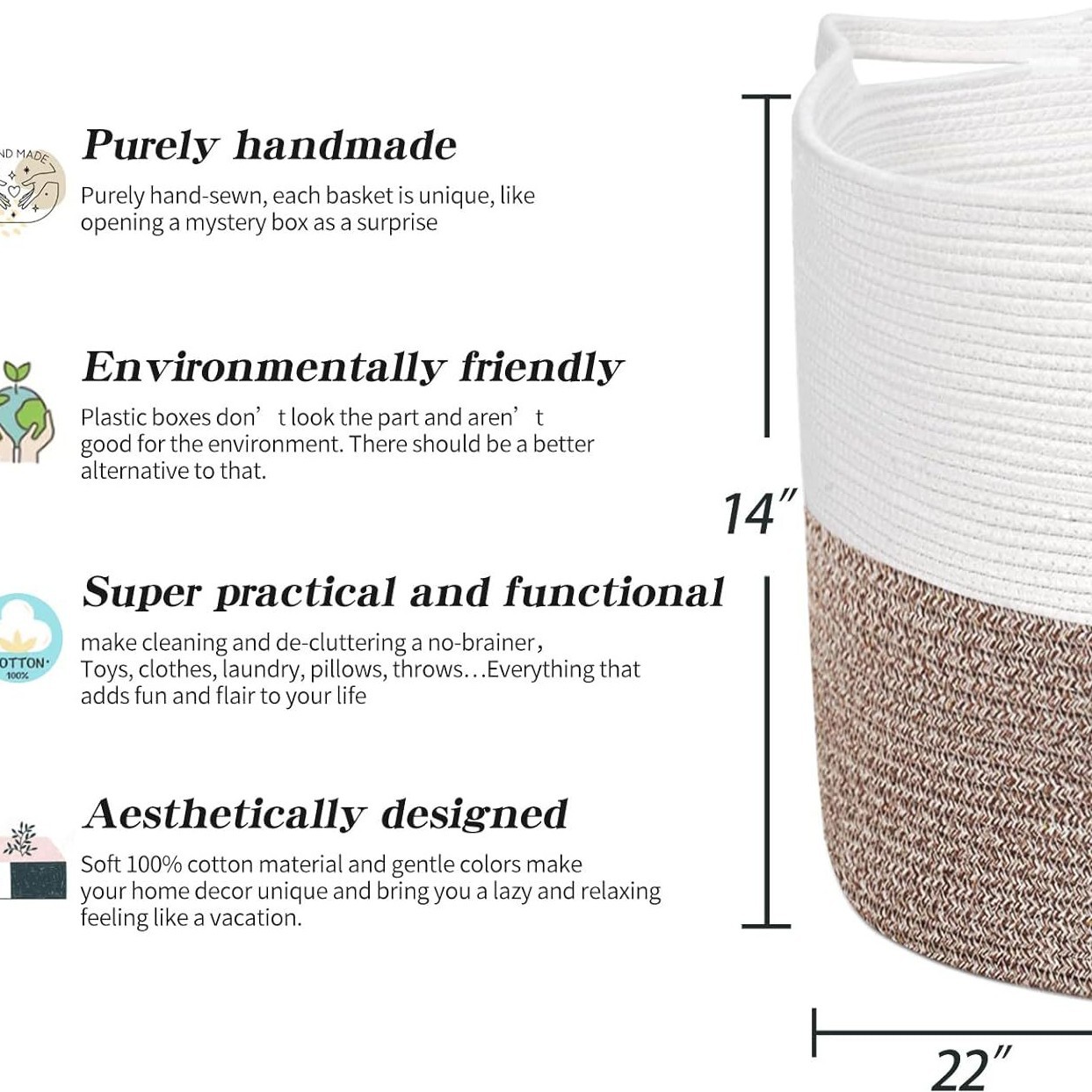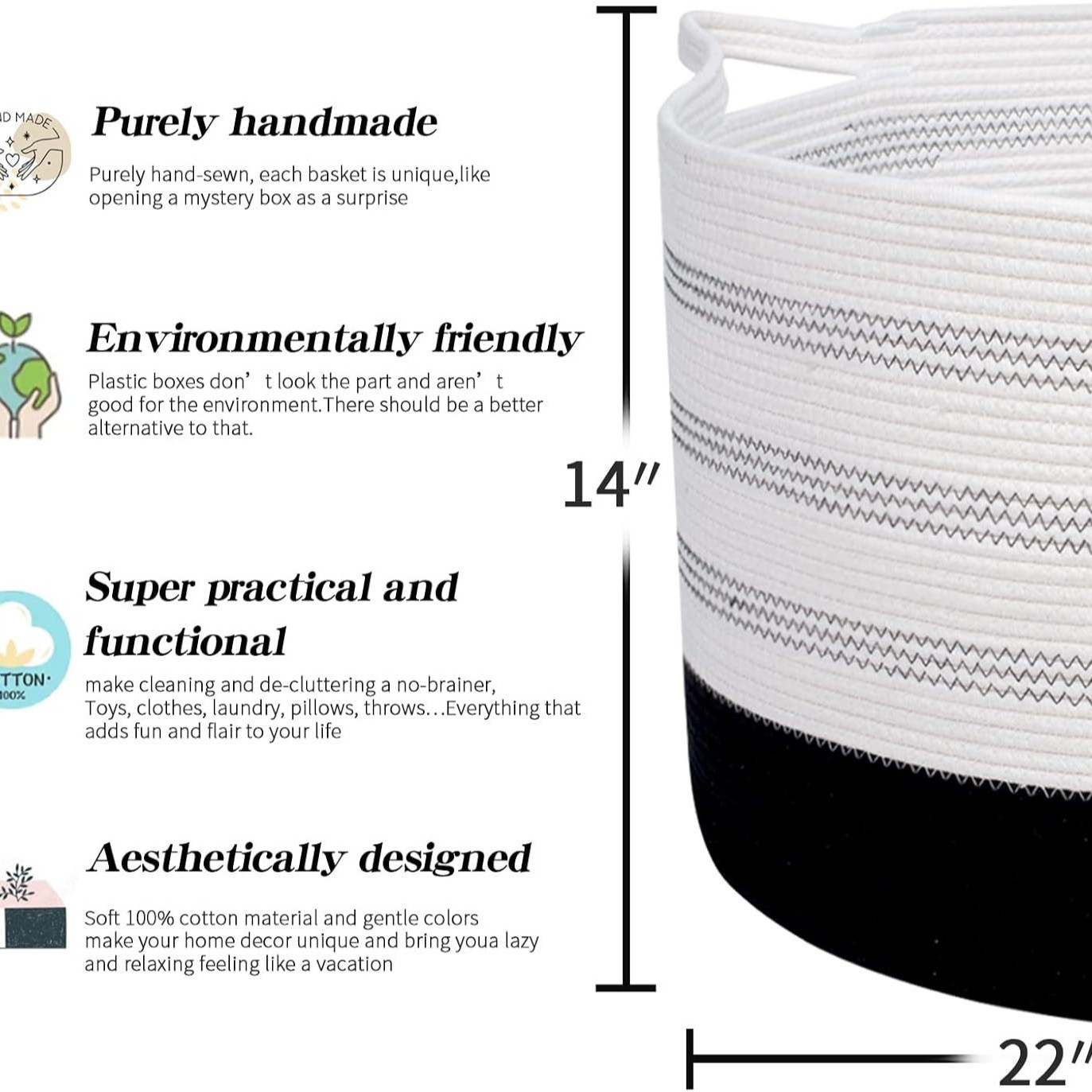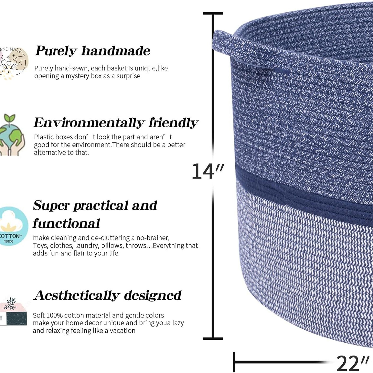 棉绳编织收纳筐家居置物篮玩具杂物衣服筐大号脏衣篮脏衣篓收纳篮