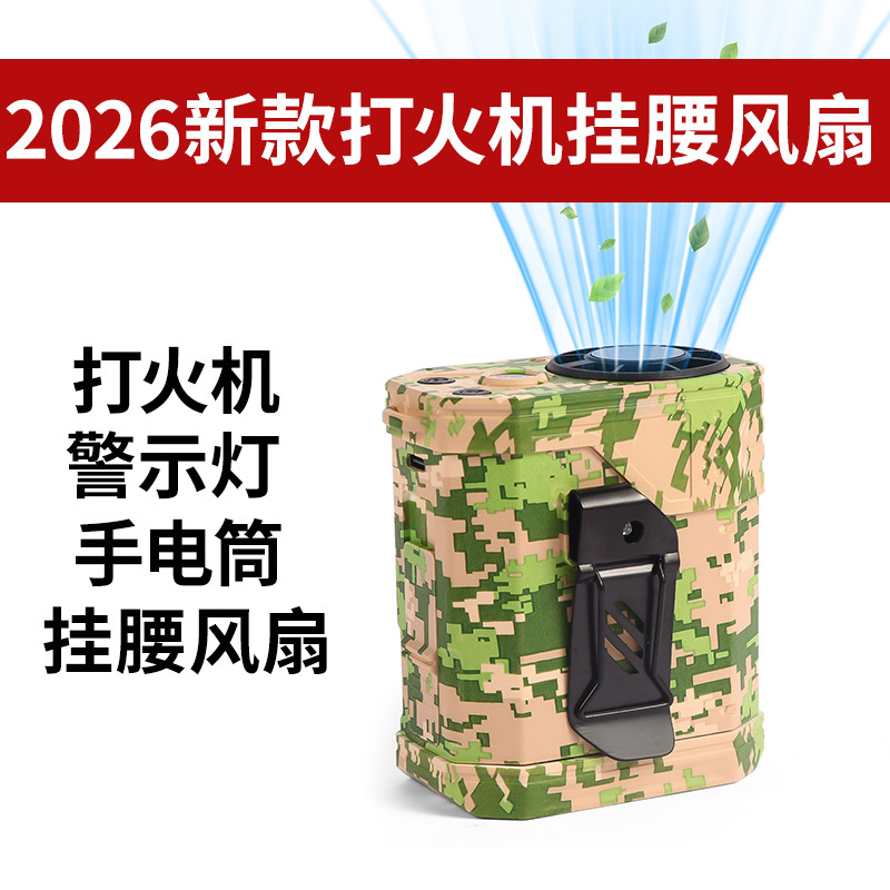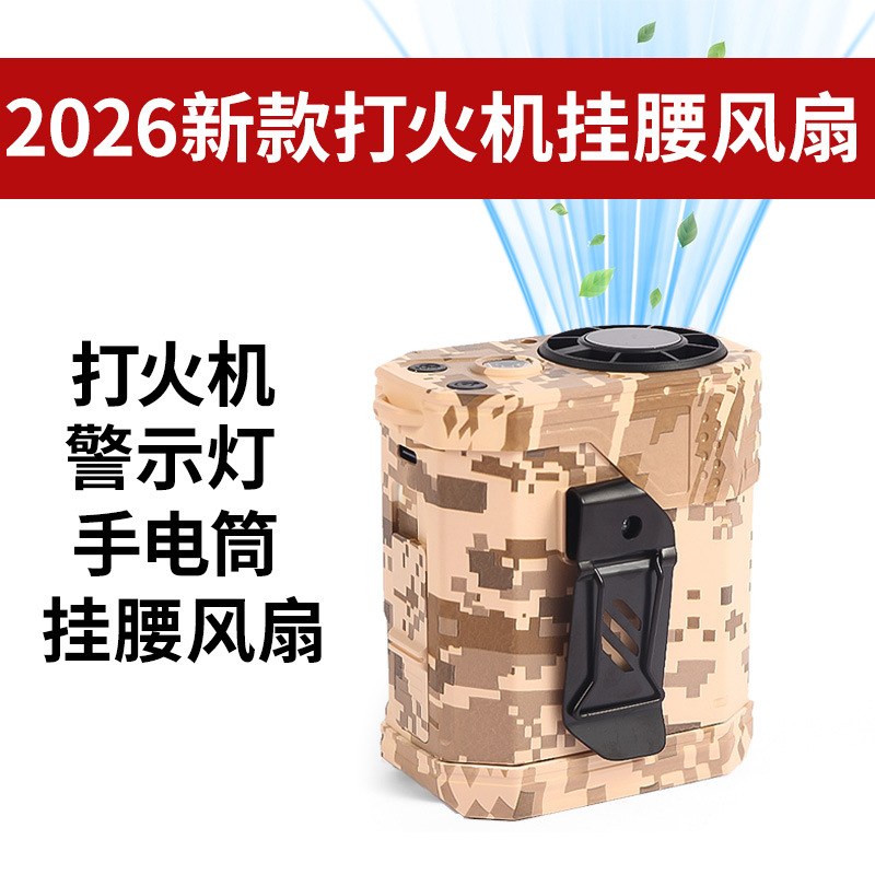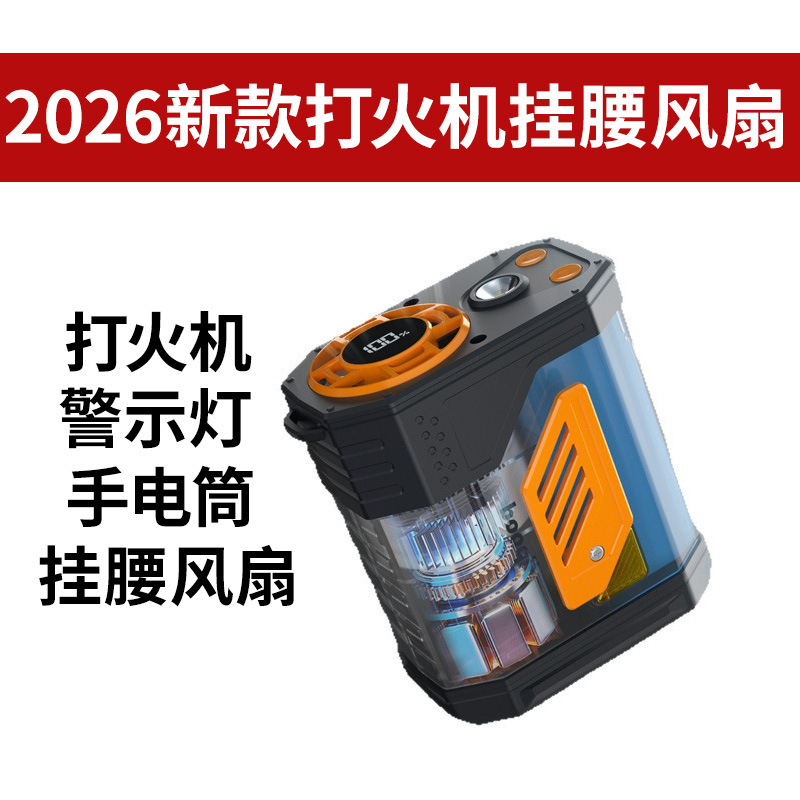 2026跨境热销挂腰风扇便携式带打火机夜灯手持小风扇高速长续航