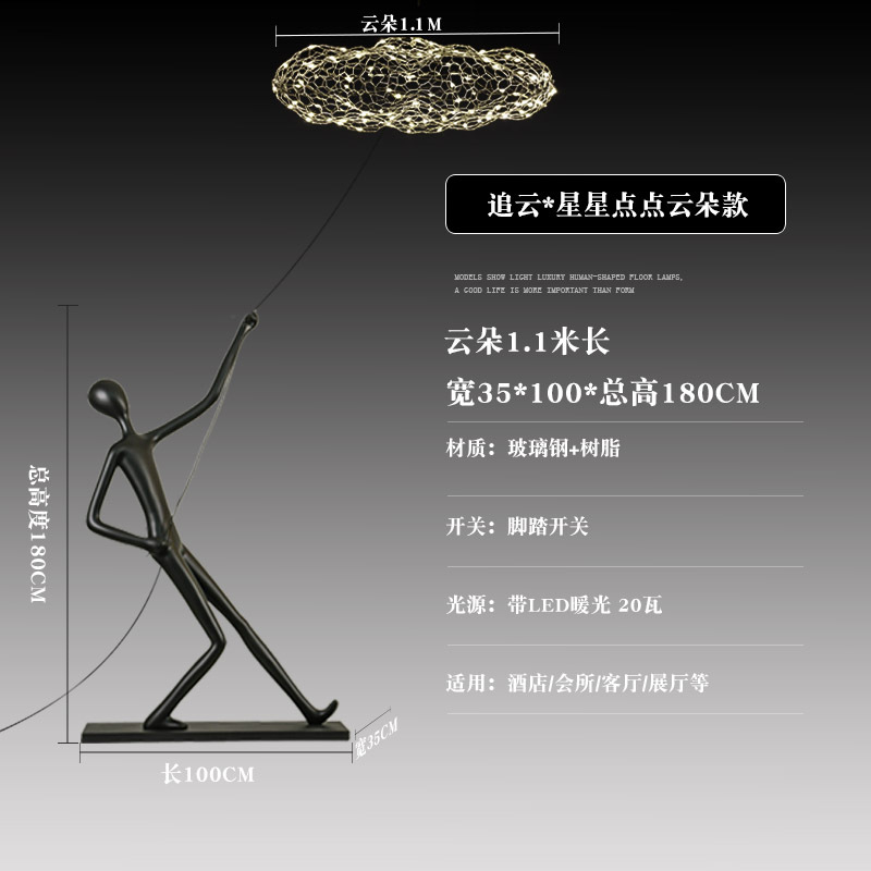 新款人形手拉云朵设计感落地灯售楼部酒店别墅轻奢雕塑装饰摆件