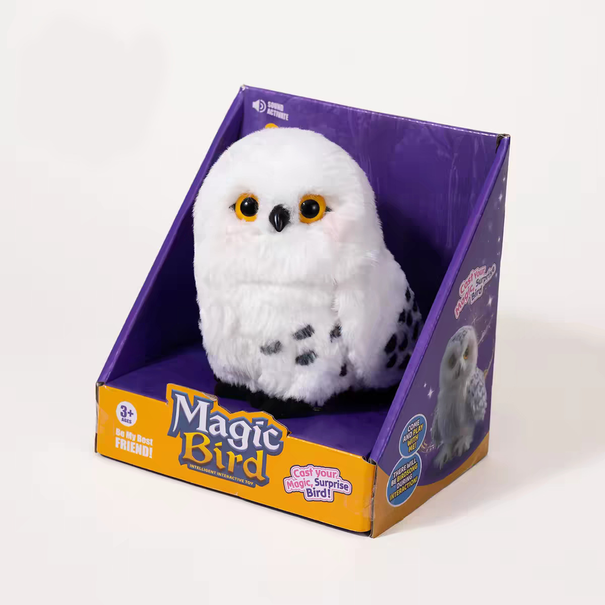 跨境欧美爆款魔法猫头鹰互动录音头部扭动发声毛绒玩具公仔礼物