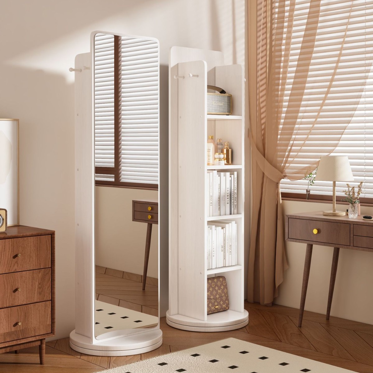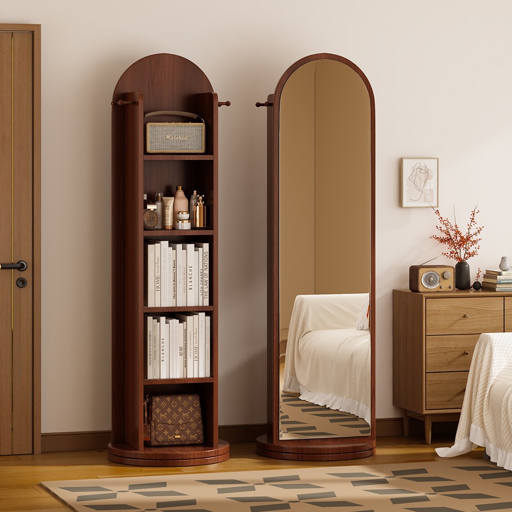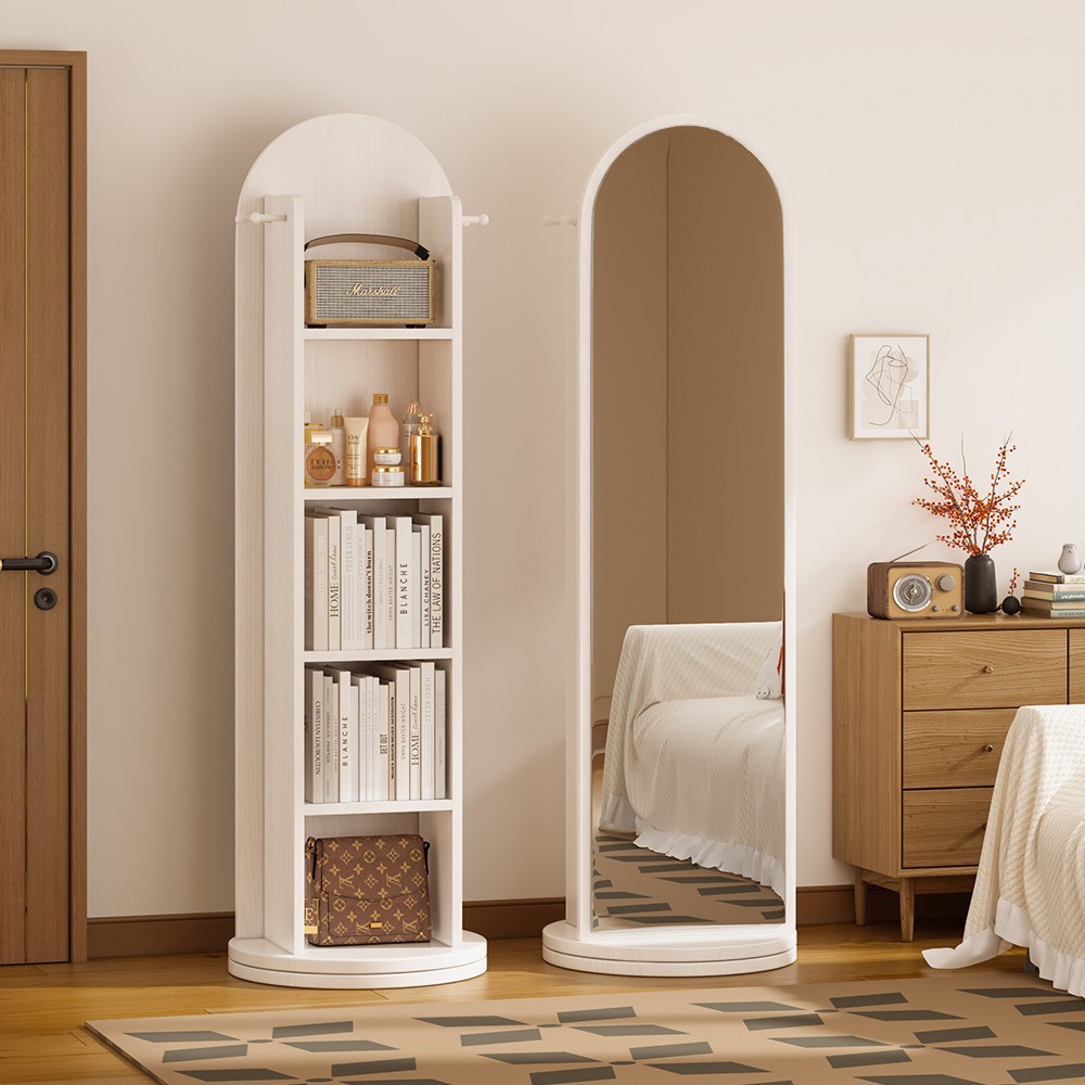 小熊旋转可移动穿衣镜全身镜落地镜报刊书一体镜子储物大试衣镜