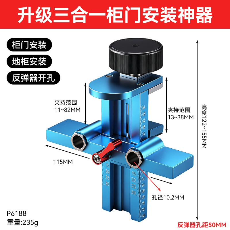 多功能加厚铝合金衣柜门安装神器 三合一双孔木工柜门安装神器