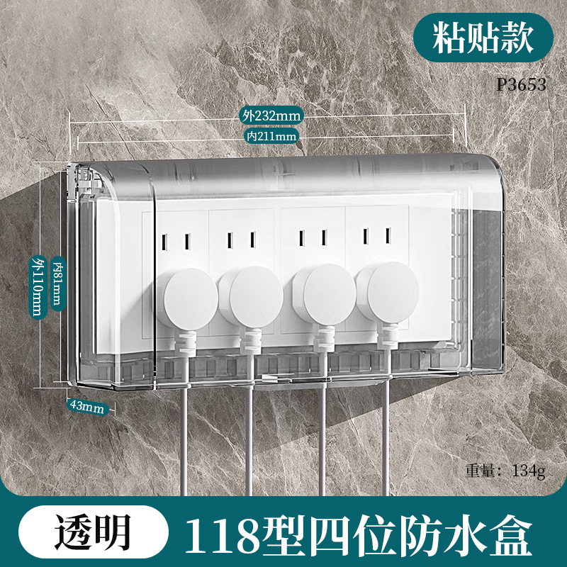 跨境免打孔86型浴室插座防水盒 明装带盖子密封卫生间插座防水盒