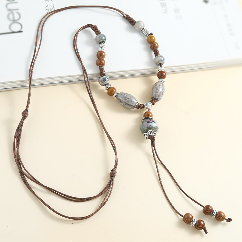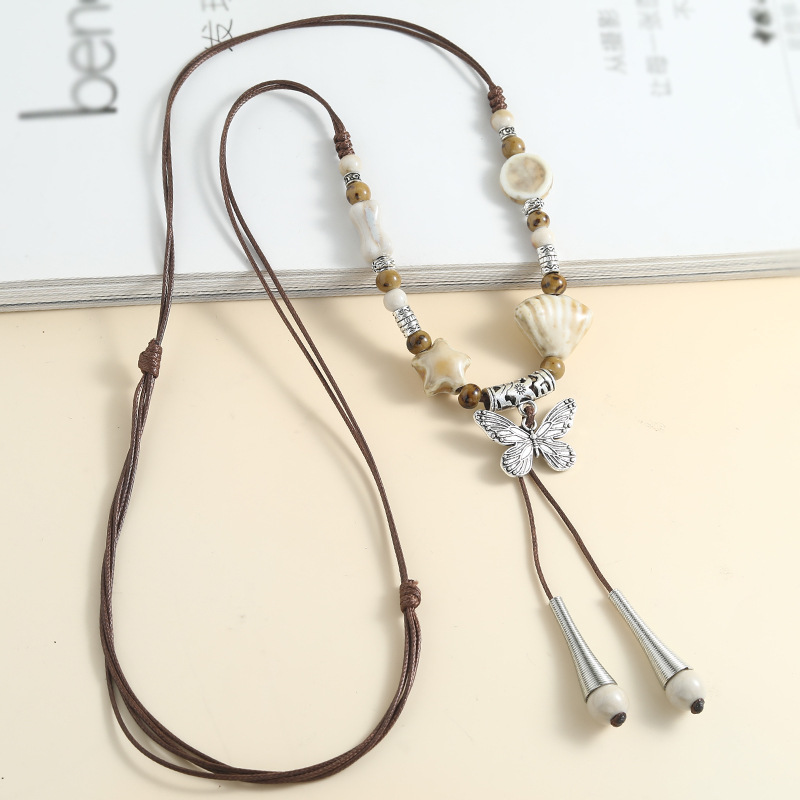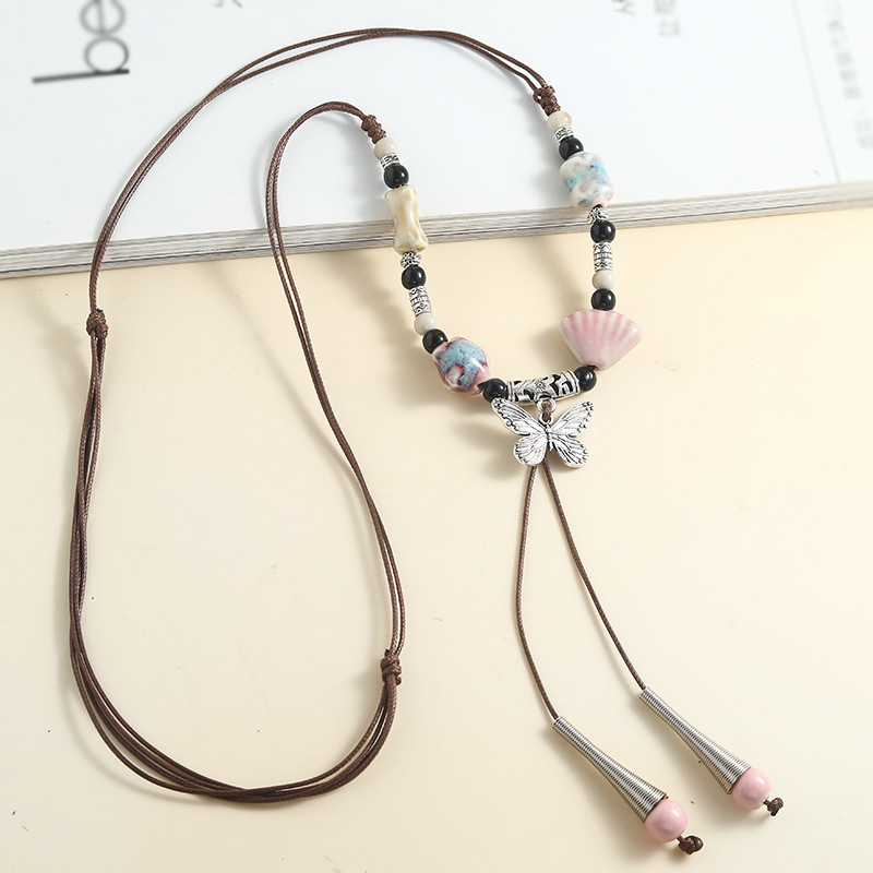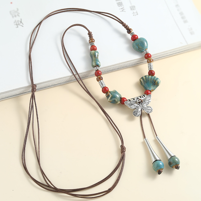 小红书热销新中式陶瓷项链饰品长款古风蝴蝶吊坠女生民族风配饰