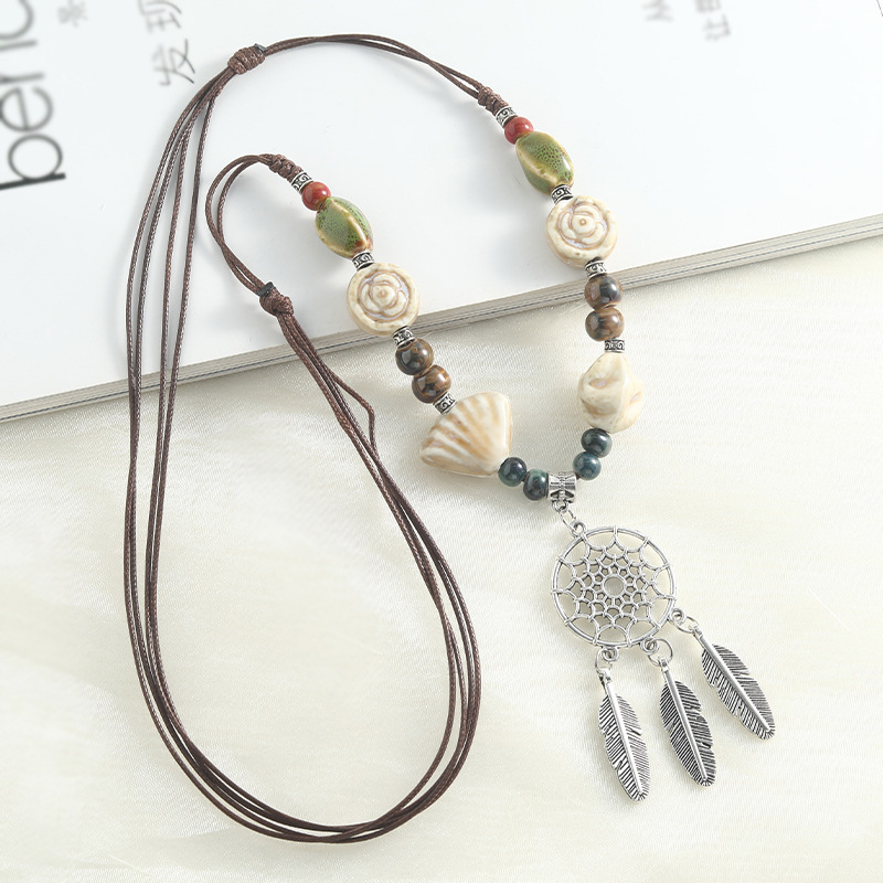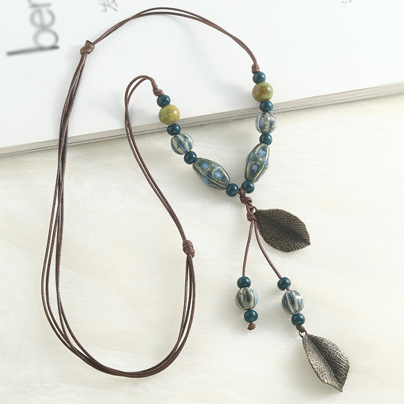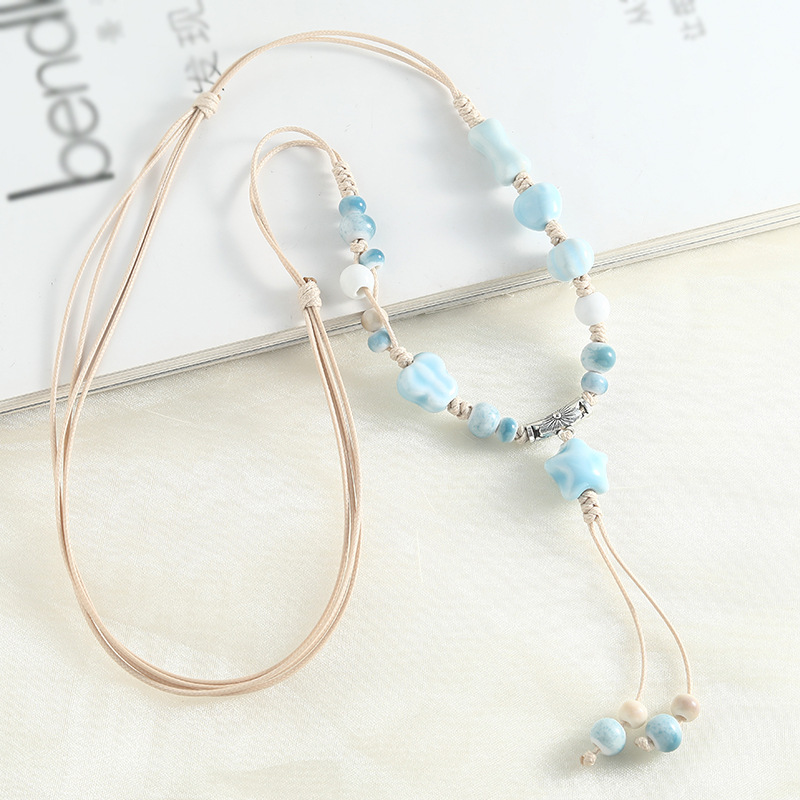 景德镇陶瓷项链长款配饰女手工编织吊坠毛衣链轻奢高级感简约百搭