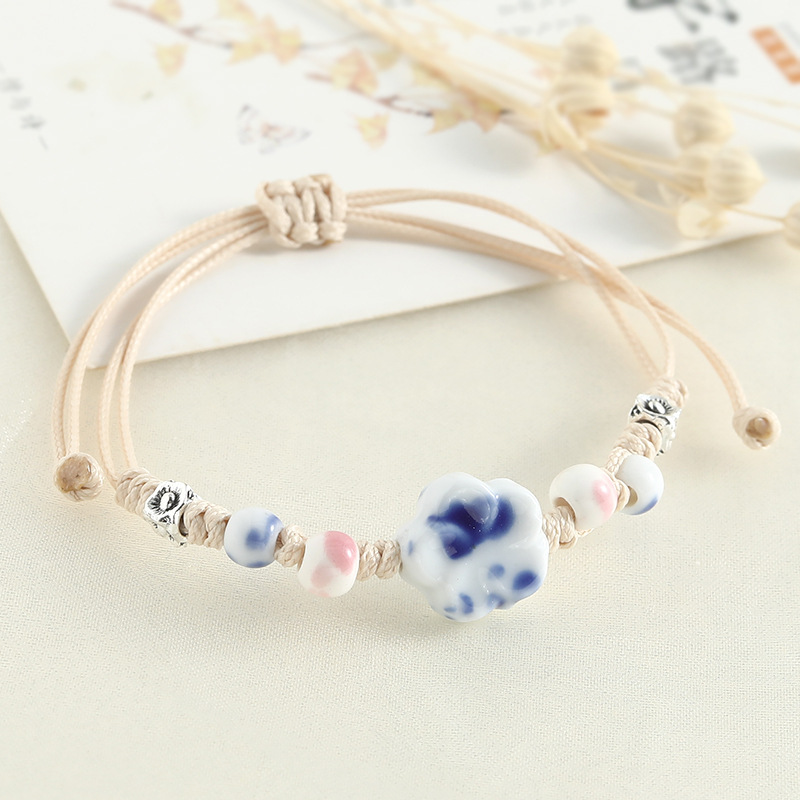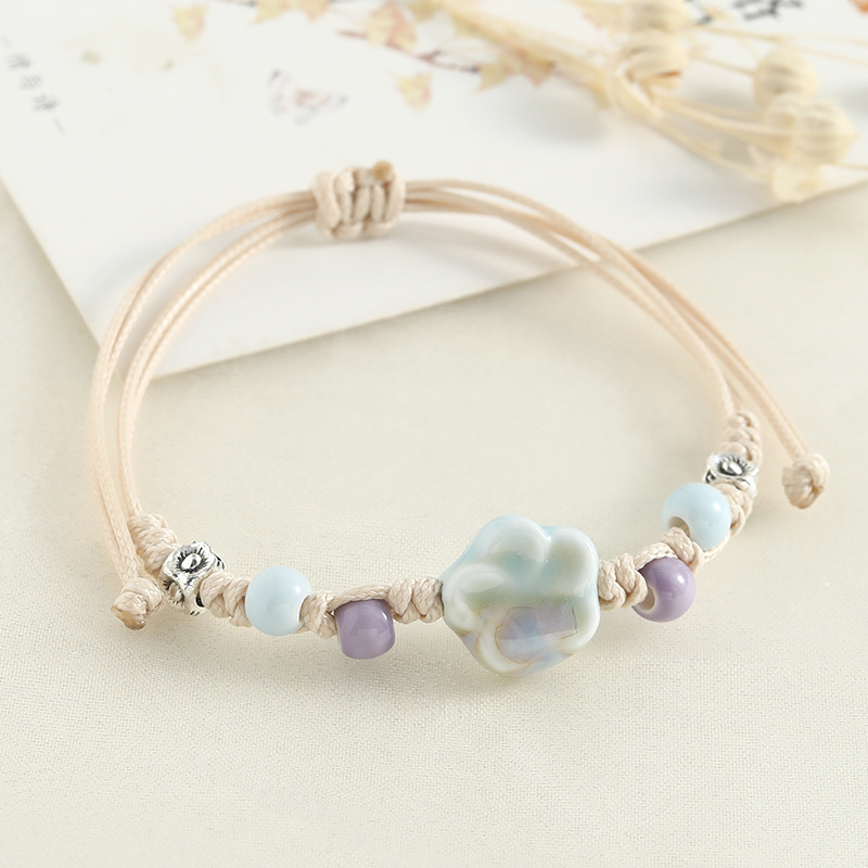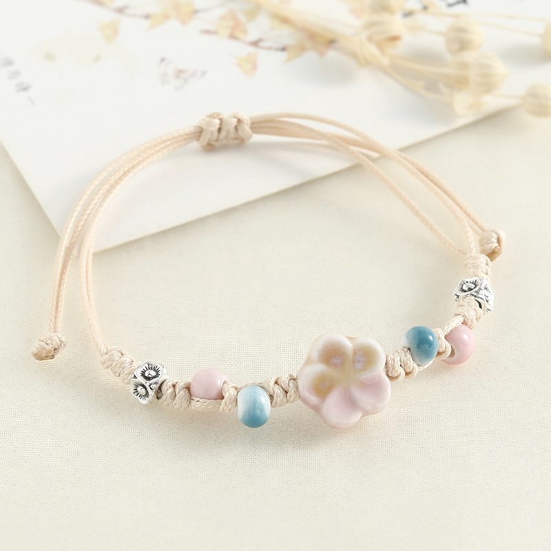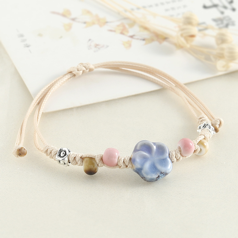 小清新文艺范花朵陶瓷手链女轻奢高级感手工编织学生闺蜜手链串珠