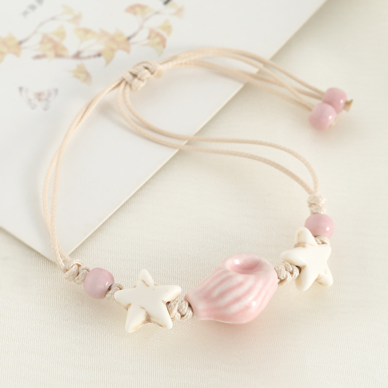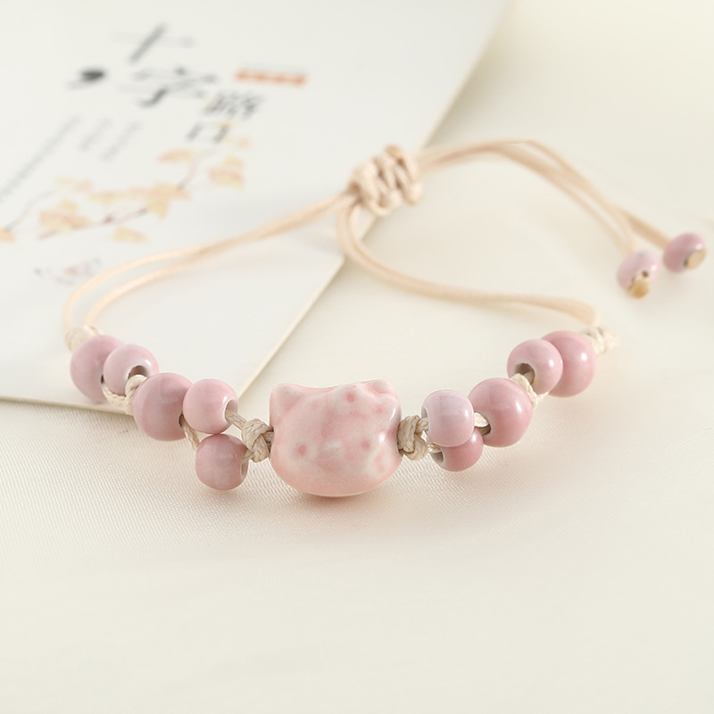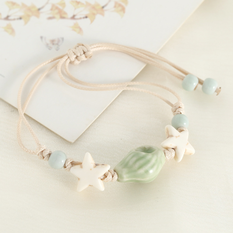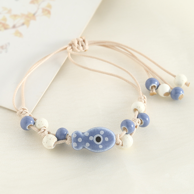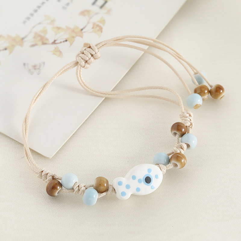 波希米亚手工编织陶瓷手链女生可爱清新小众陶瓷手串百搭串珠手饰