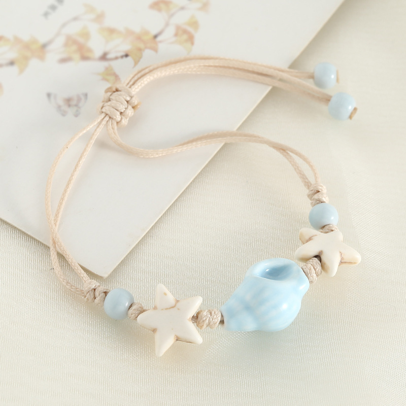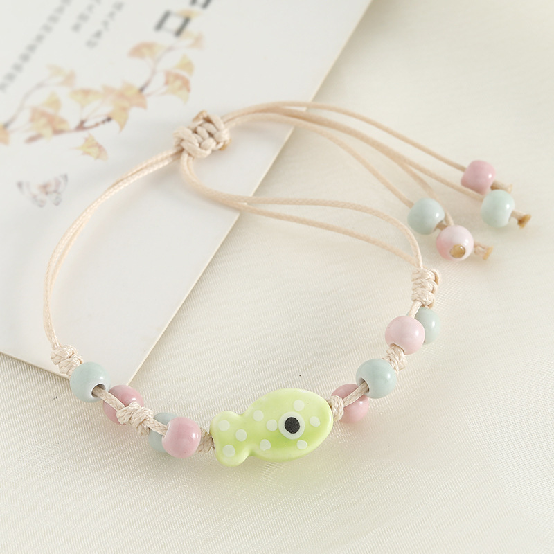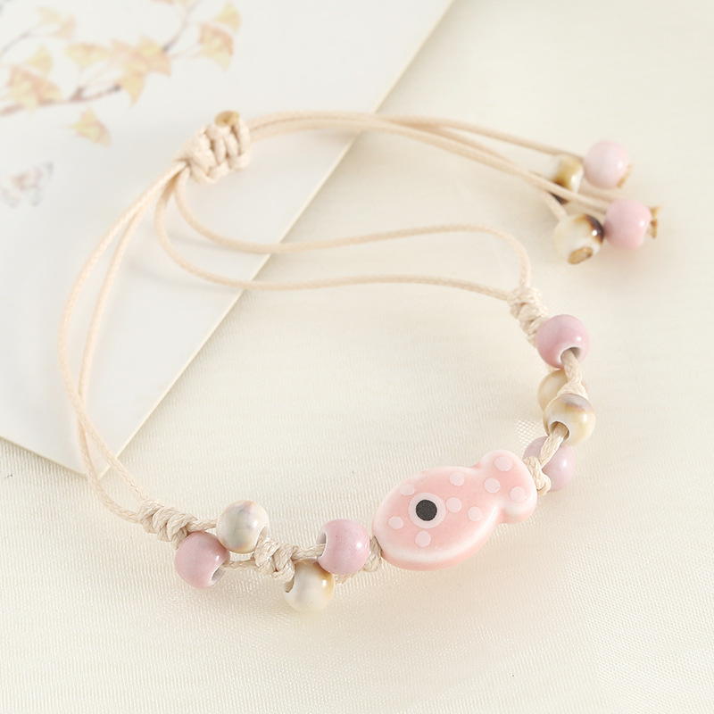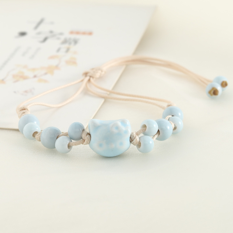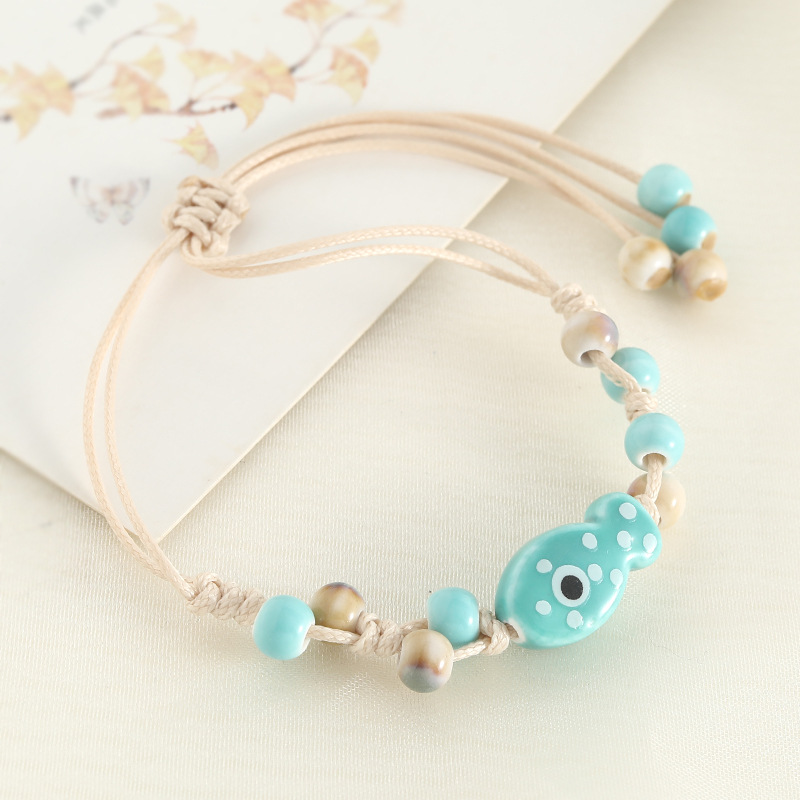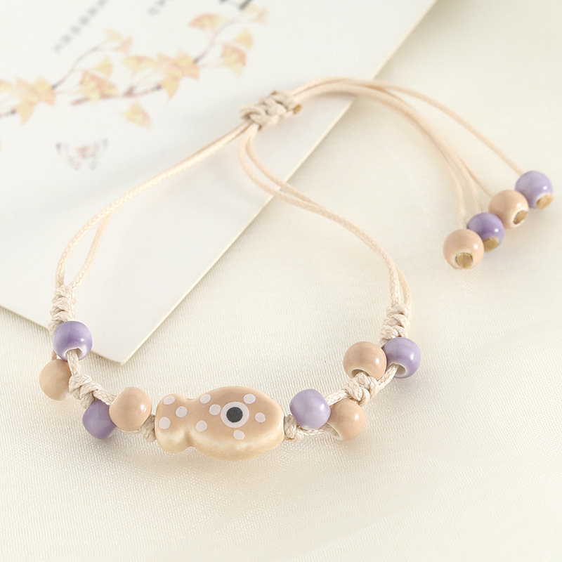 波希米亚手工编织陶瓷手链女生可爱清新小众陶瓷手串百搭串珠手饰