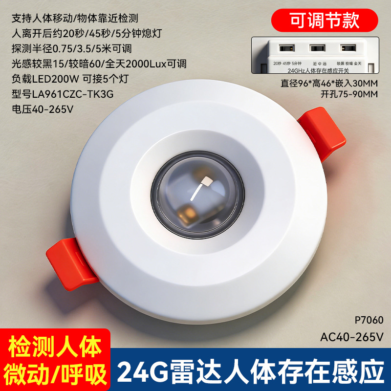 免打钉智能人体感应开关 高灵敏度可调节无线微波雷达感应开关