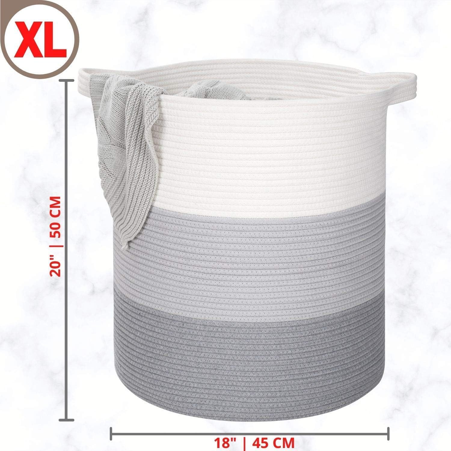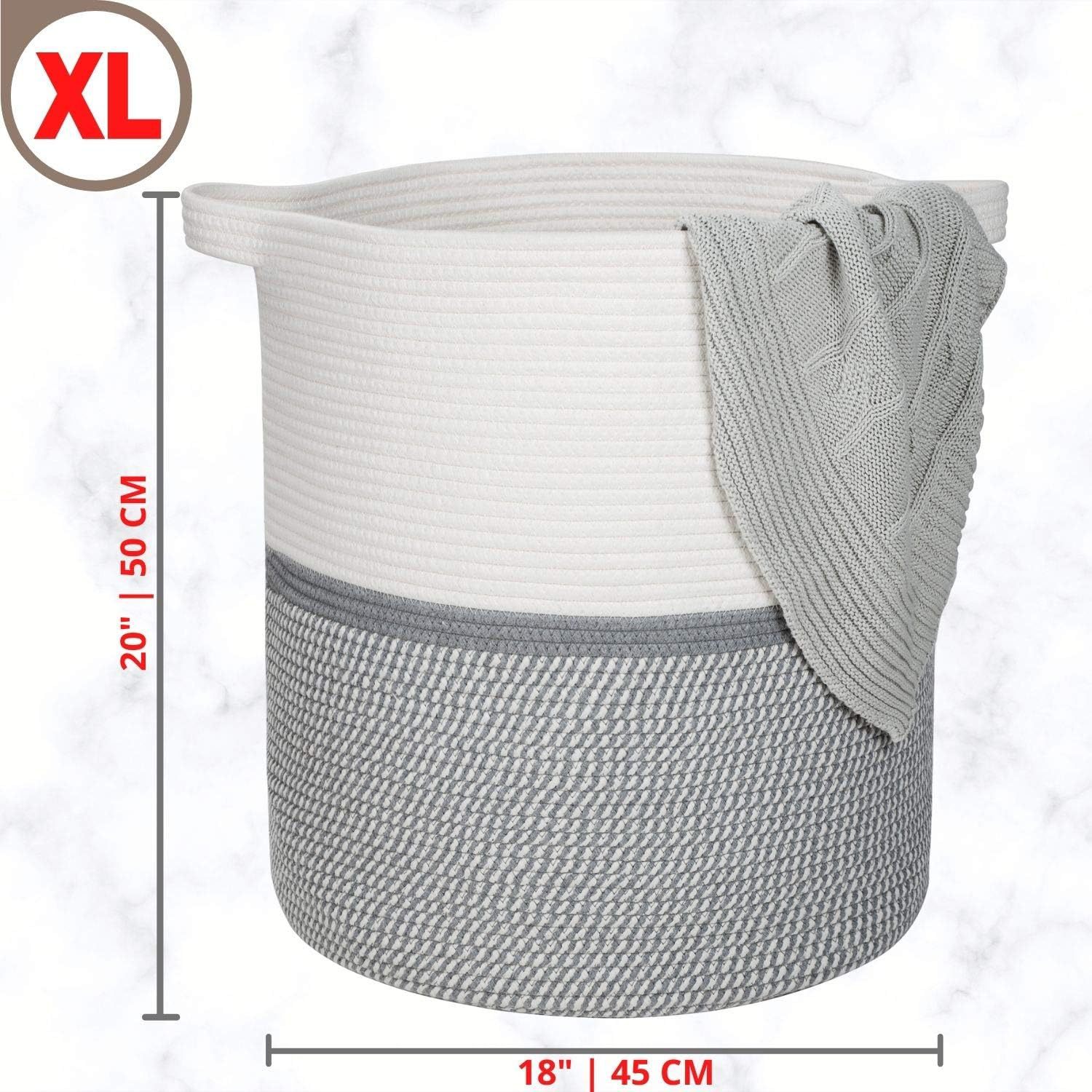 编织篮绳索储物篮大号棉质收纳篮英寸婴儿毛毯篮儿童玩具洗衣篮