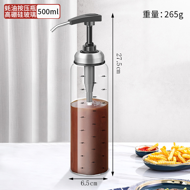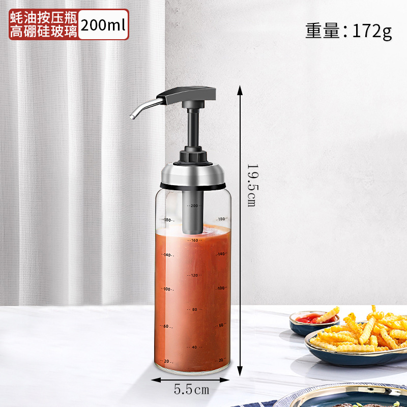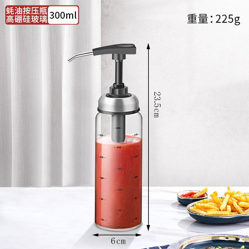 蚝油瓶挤压器高硼硅玻璃蚝油按压瓶厨房番茄沙拉挤压瓶酱料分装瓶