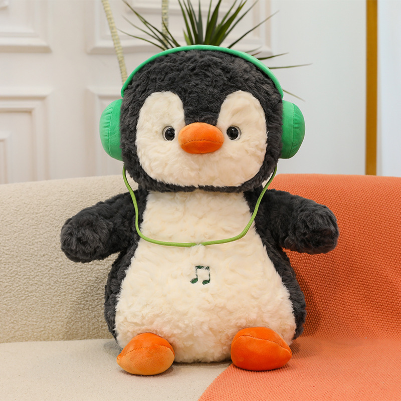 新款动感耳机企鹅毛绒玩具公仔可爱听歌企鹅宝宝玩偶娃娃儿童礼物