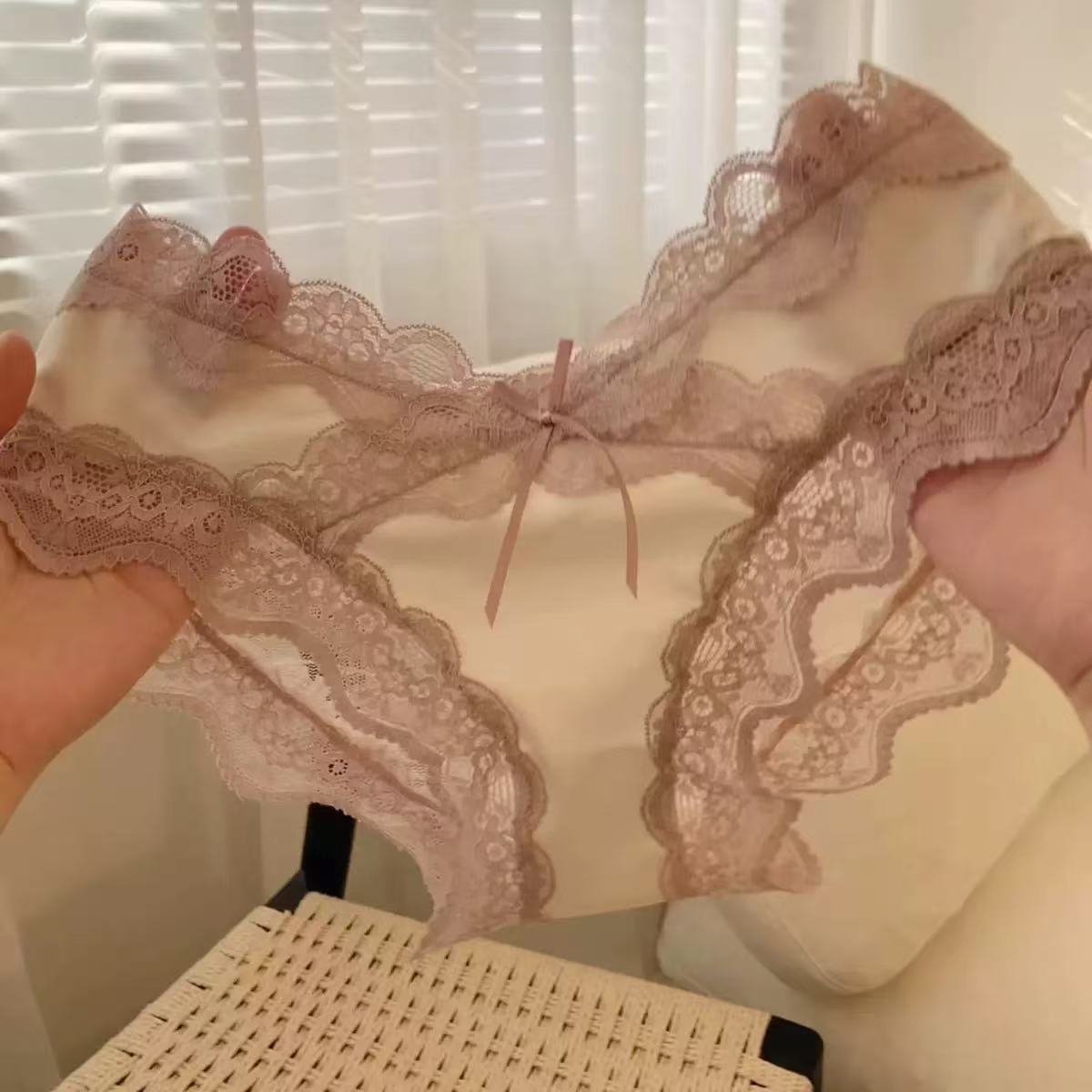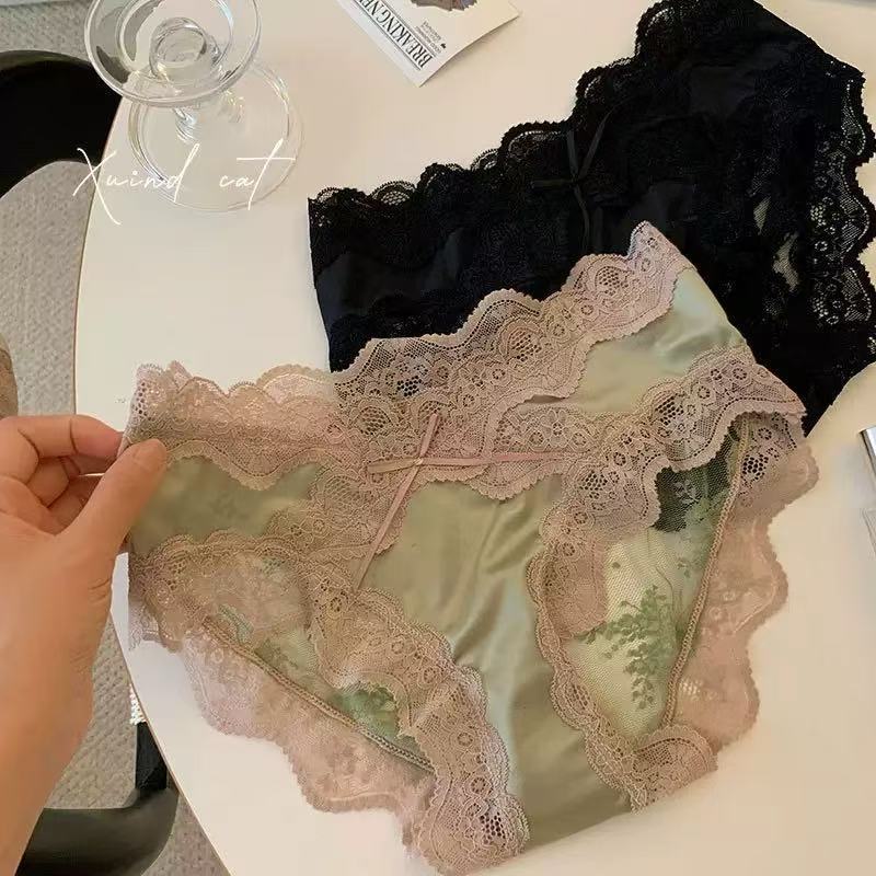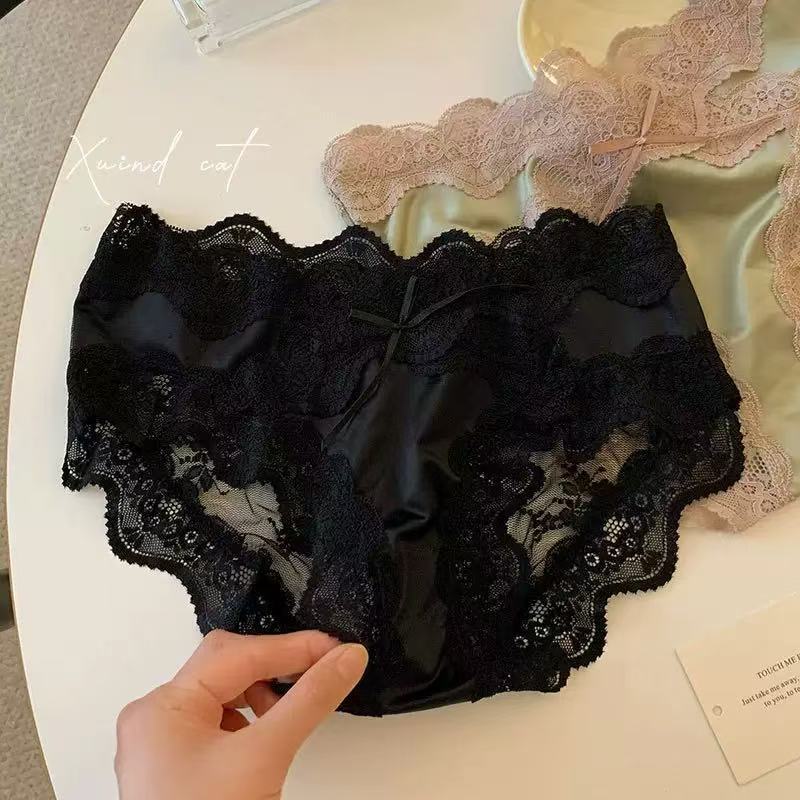 女士法式蕾丝内裤轻奢纯欲风性感网纱缎面纯棉裆无痕中腰女三角裤