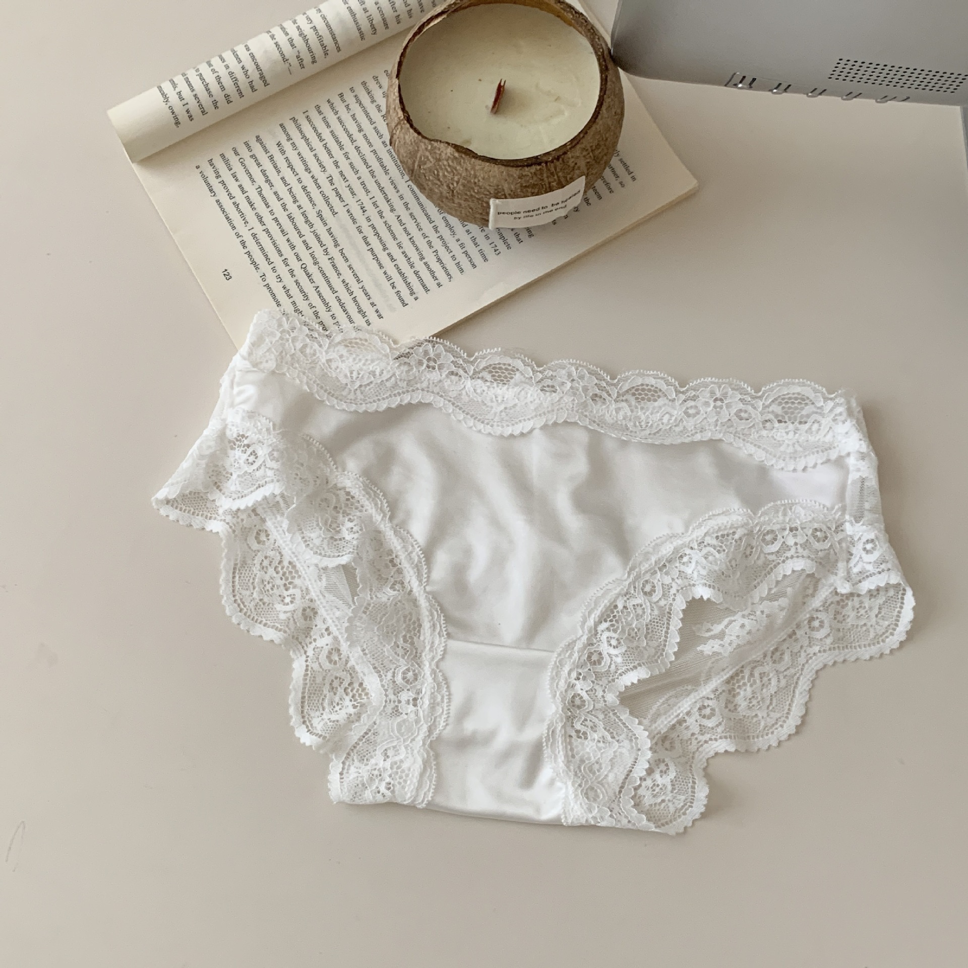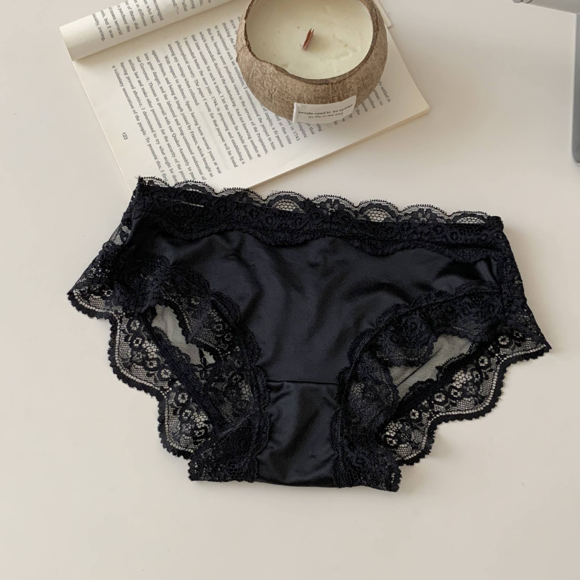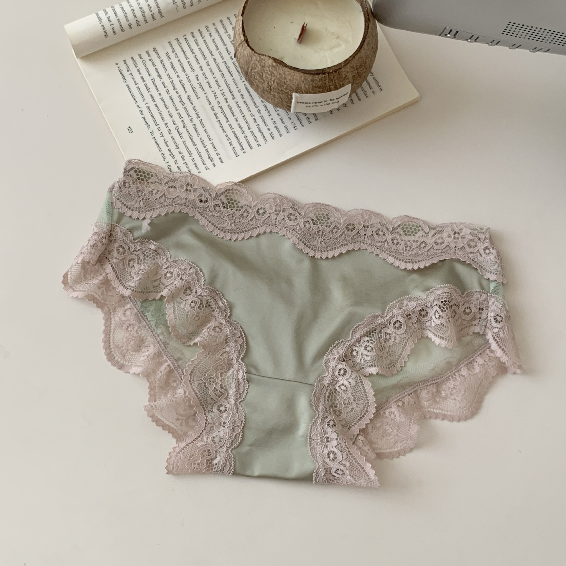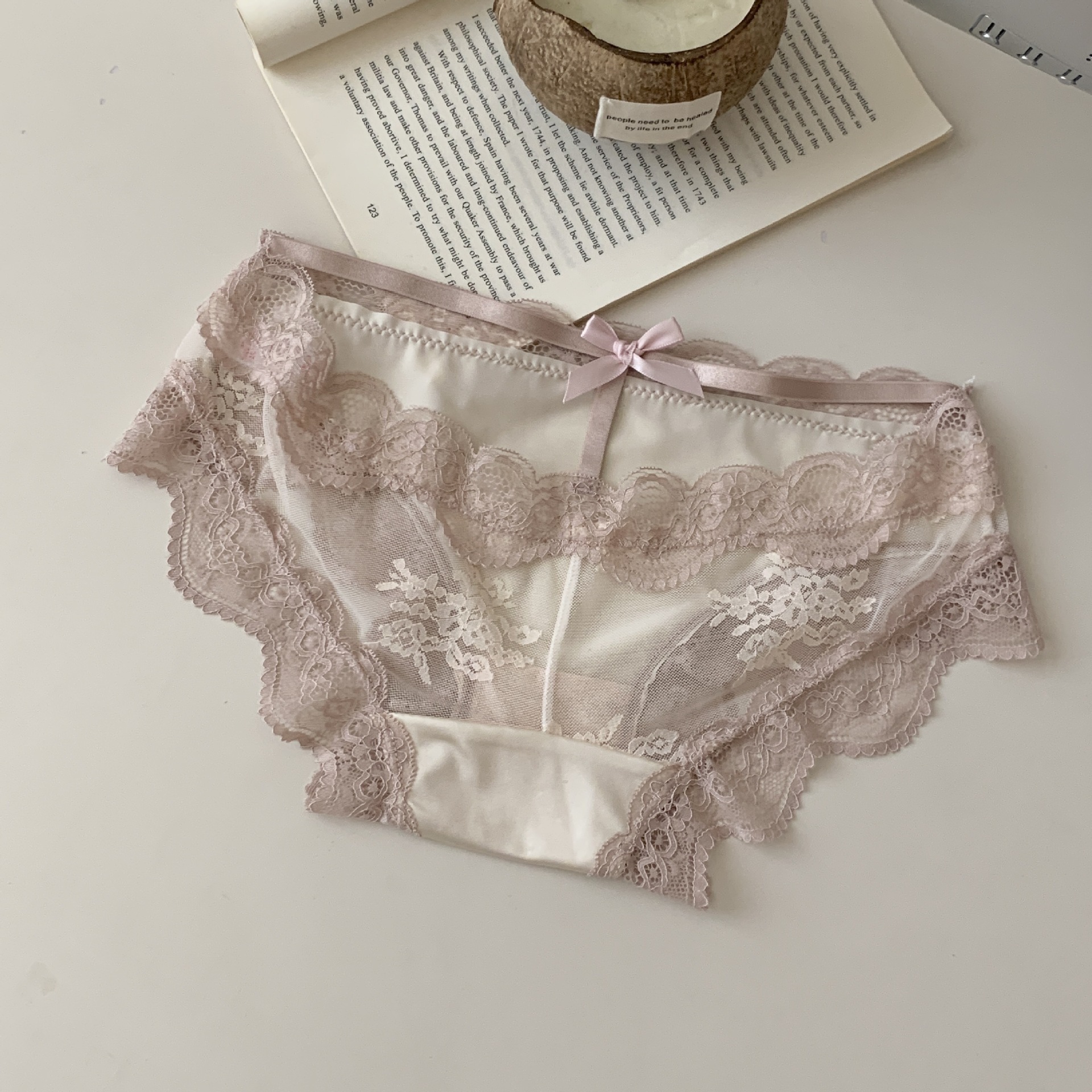 千金小姐~绸面丝滑纱网薄款中低腰透明性感网纱蝴蝶结女士三角裤